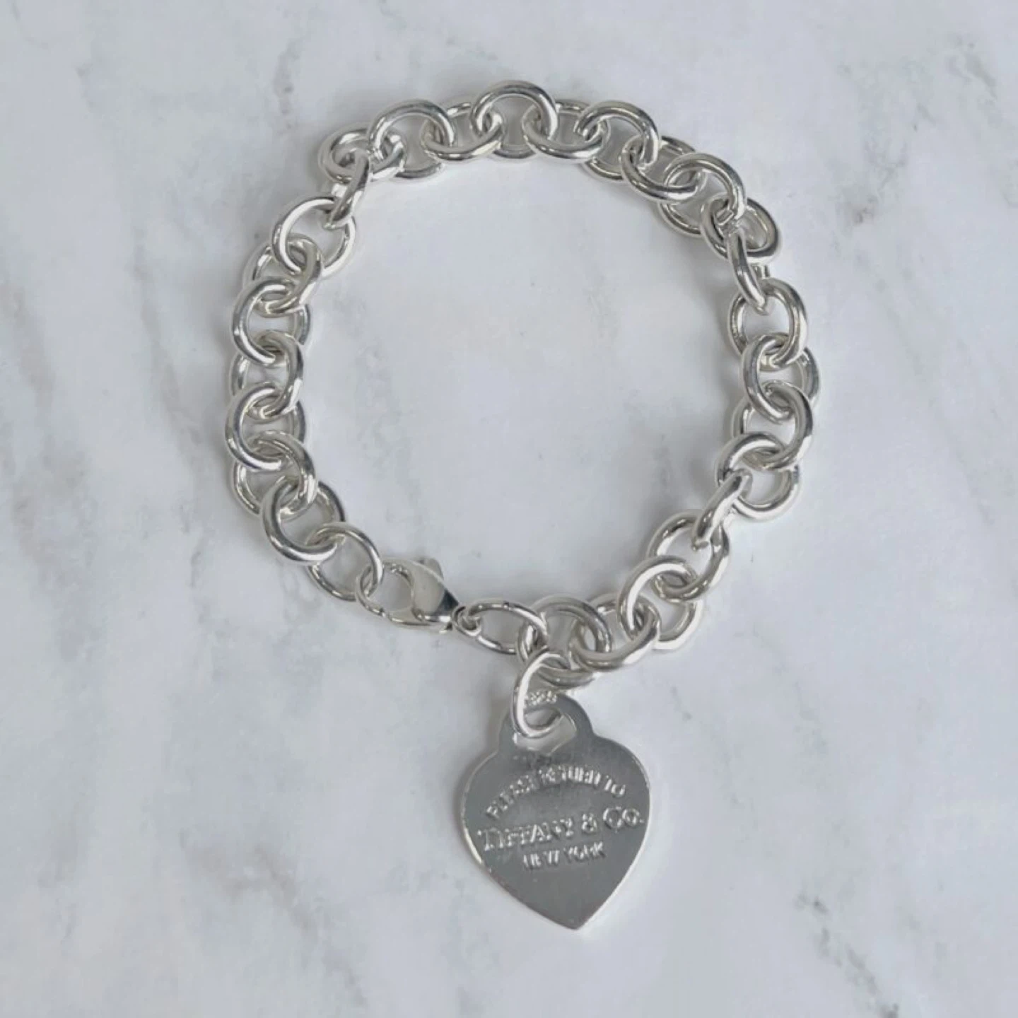 Classic Tiffany & Co. Return to Tiffany heart tag charm bracelet. Crafted from sterling silver. Bracelet length is 7.5 inches. It's a timeless piece for any jewellery collection!