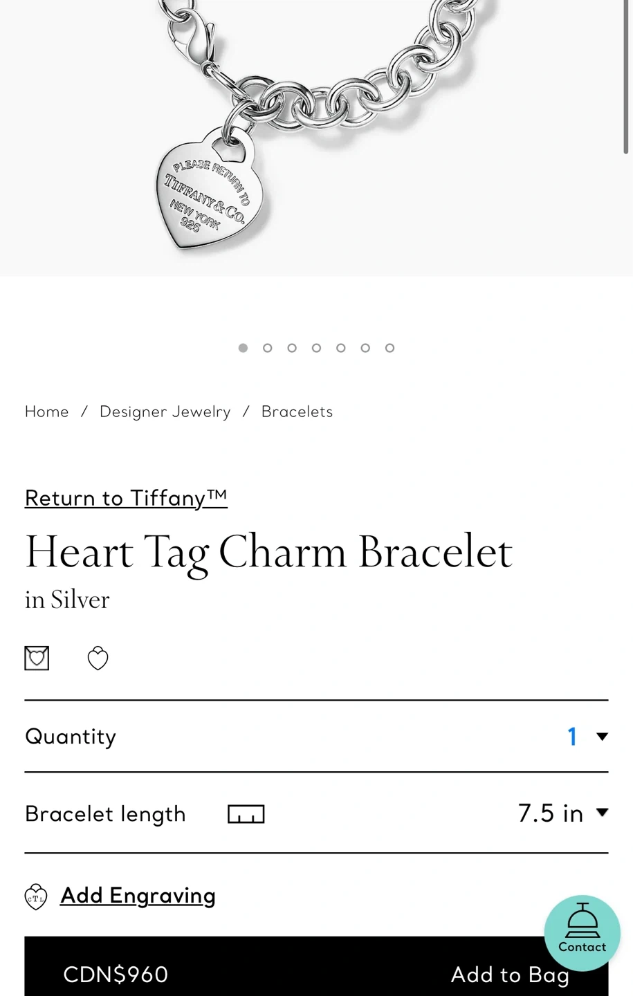 Tiffany Heart Tag Charm Bracelet