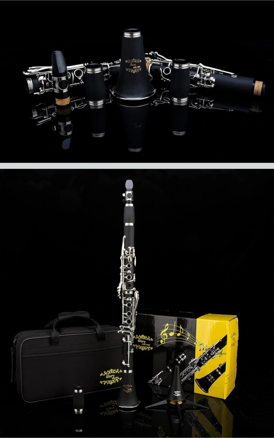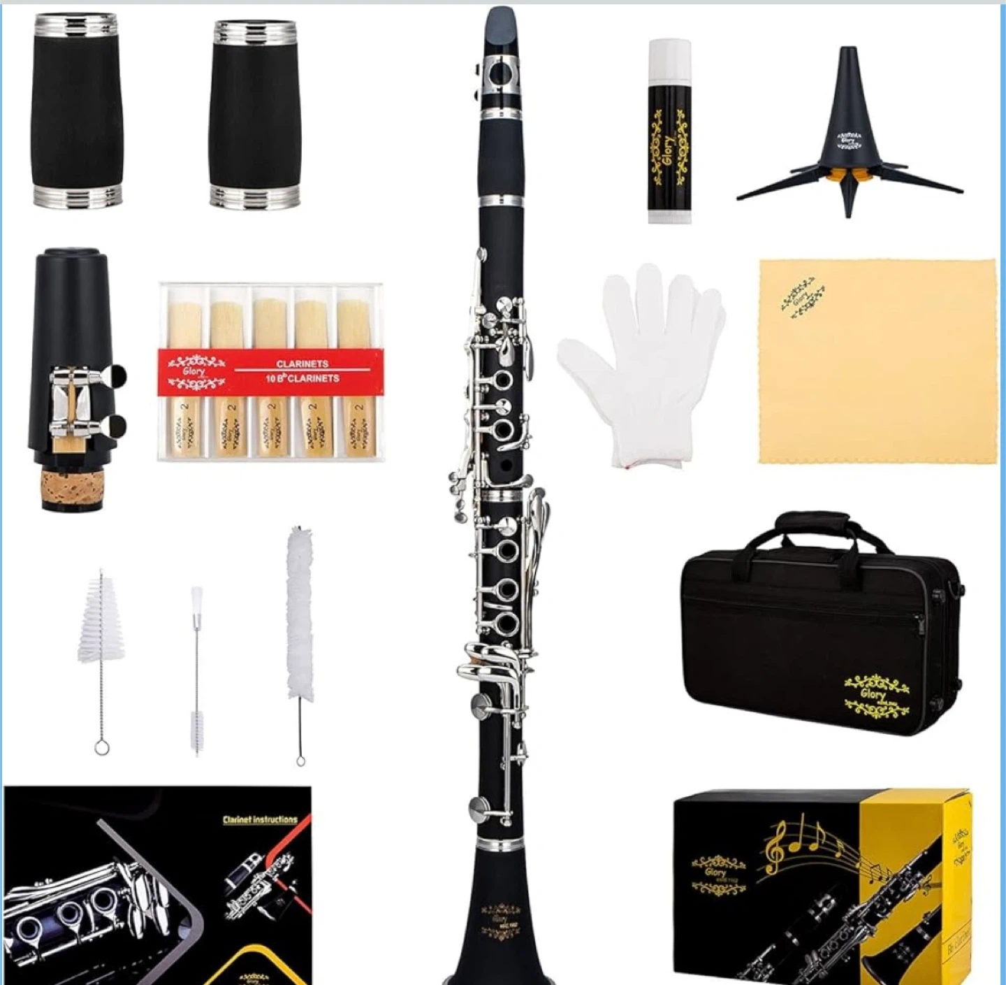 GLORY Bb Clarinet with Reeds, Stand, Case & Accessories