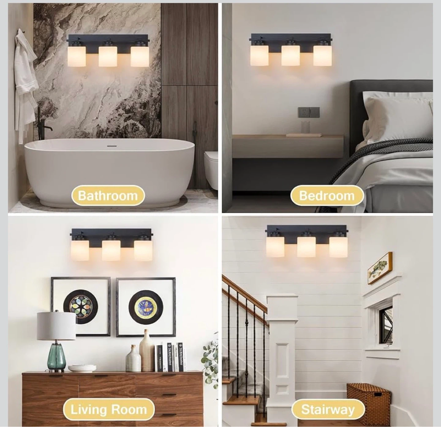 3 Light Modern Light Fixtures Over Mirror, Black Vanity Lights for Bathroom Wall Sconces with Milky White Glass Shades, E26 Socket (Bulbs Not Included)