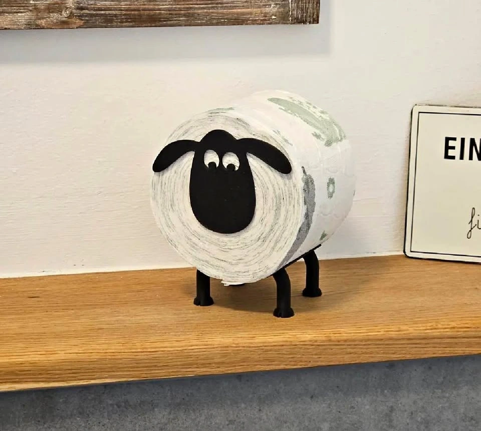High quality 3D printed sheep toilet paper holder. Available in: Black, vibrant green, pink, red, yellow, purple, brown, orange, white, blue, grey, marble, and olive green.