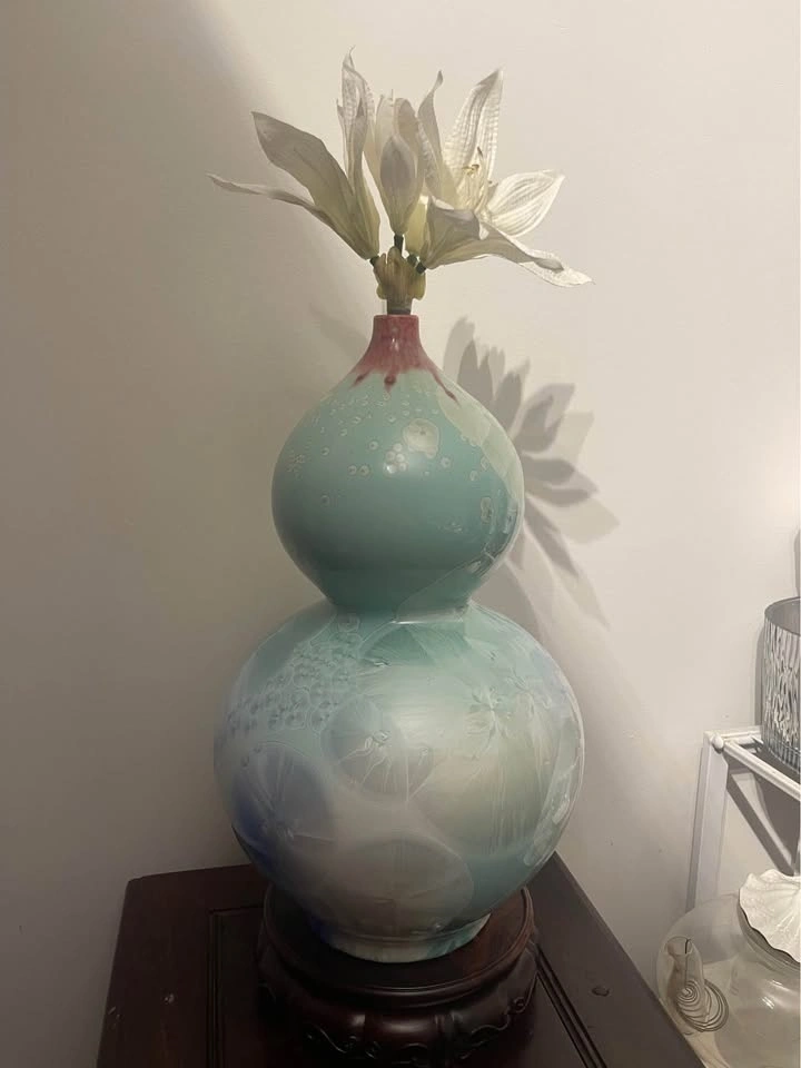 Unique Crystalline Glaze Gourd Vase w/ Flower