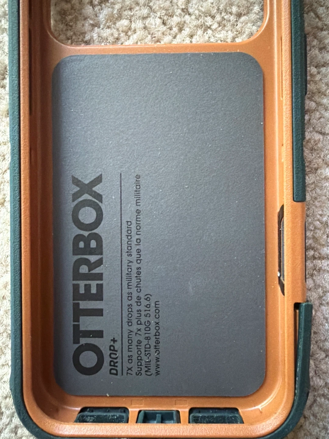 OtterBox Defender Series case. Offers 7x as many drops as military standard protection. Durable casing for your device. Suitable for iPhone 17 pro max. Original price is 70$.