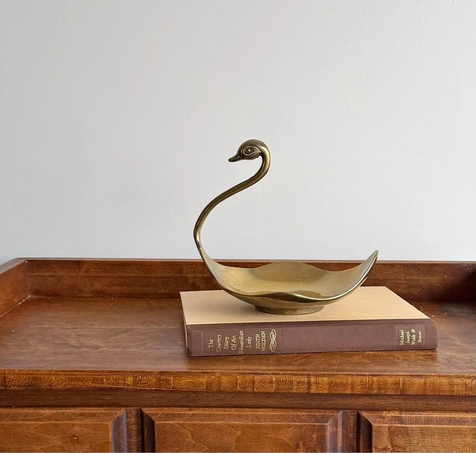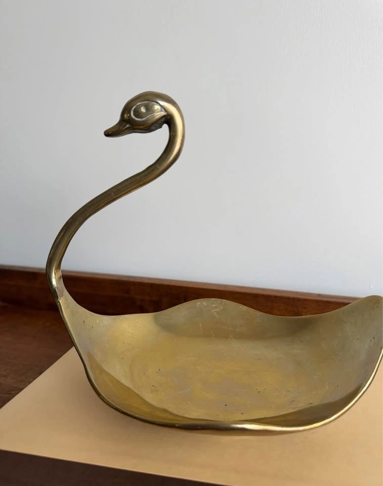 Vintage Brass Swan Dish — Trinket Bowl Catchall