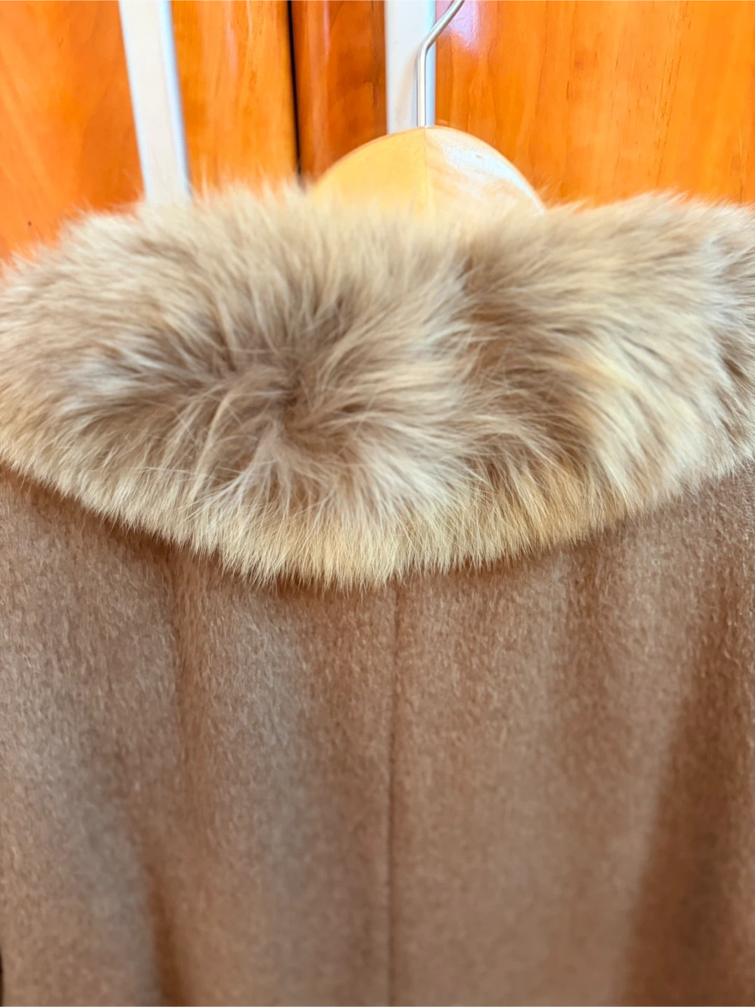 Terra Women's Brown Alpaca Wool Blend Coat with Fur Collar
