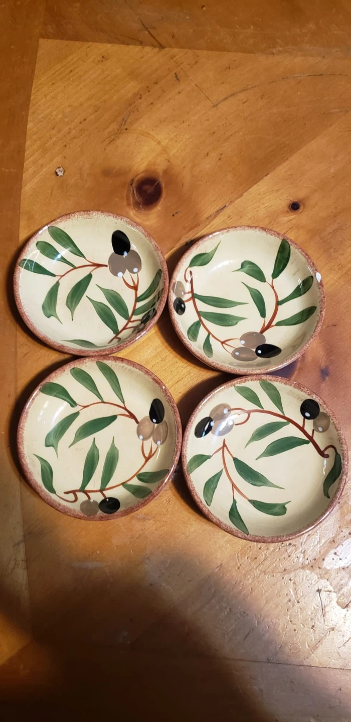 Selling a set of four ceramic bowls, each decorated with a painted olive branch design. These are in good condition and would be a nice addition to your kitchen or dining collection