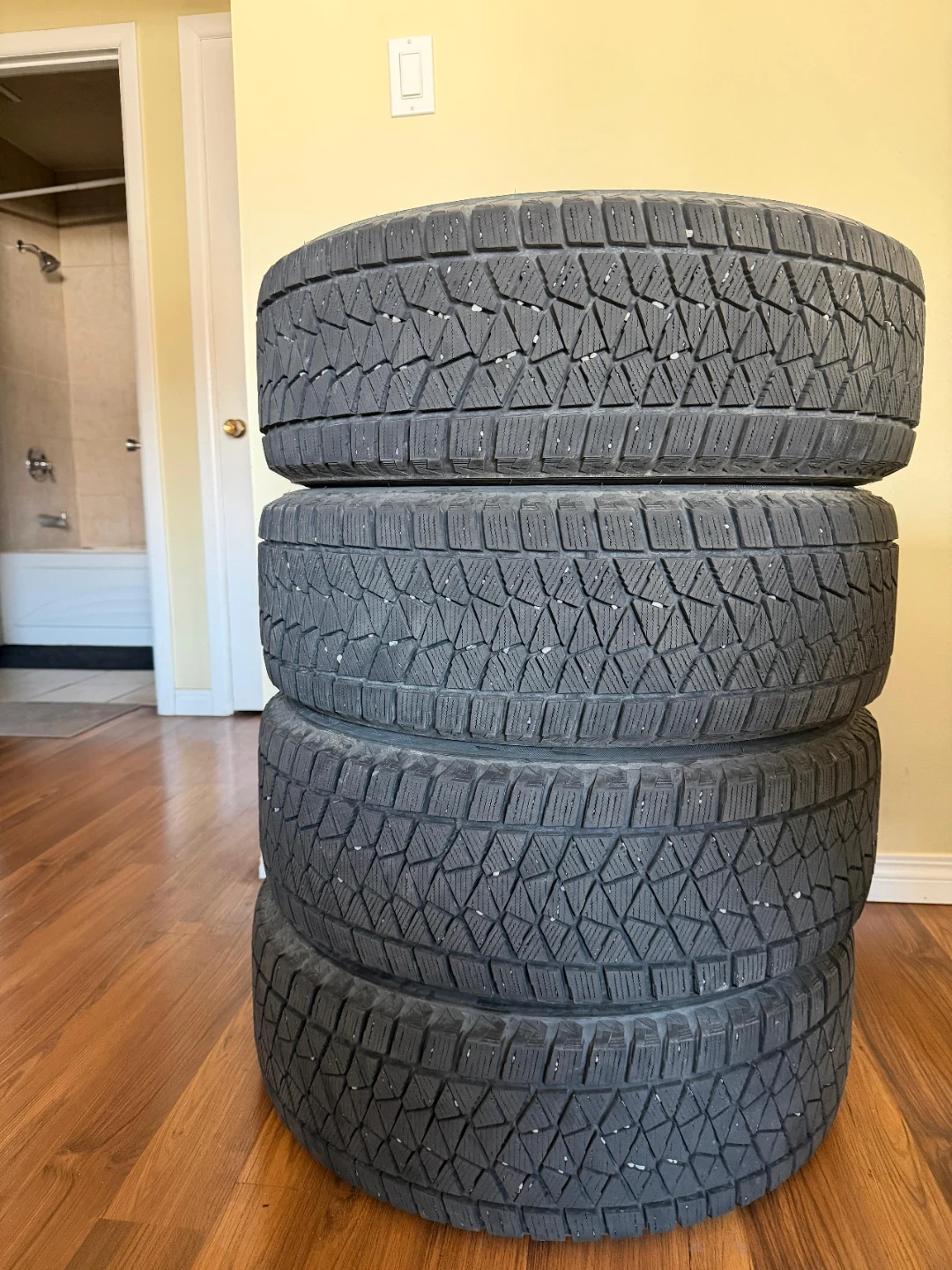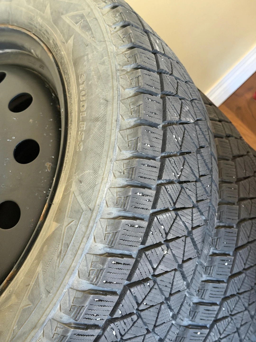 Selling a full set of Bridgestone Blizzak winter tires mounted on steel rims.