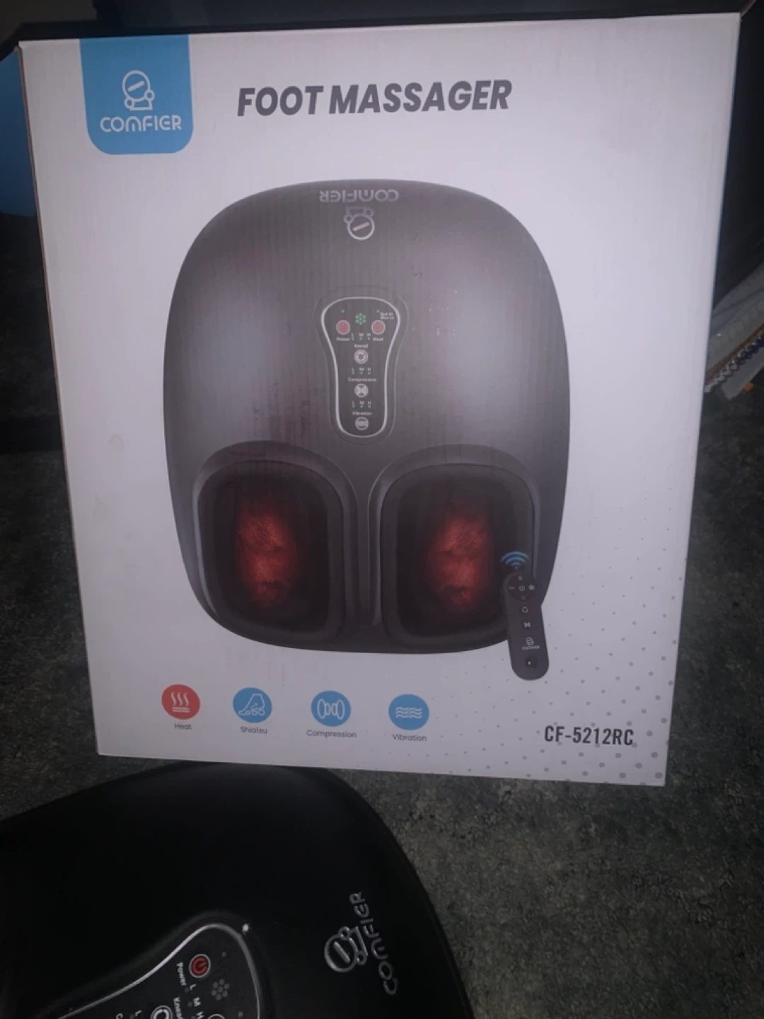 This Comfier foot massager offers heat, shiatsu, compression, and vibration for a relaxing experience. It includes a remote control for easy operation. Its compact design makes it suitable for home or office use. Pick up only cash only never used bought for my wife but she had already ordered one. Original box any questions please ask, best offer