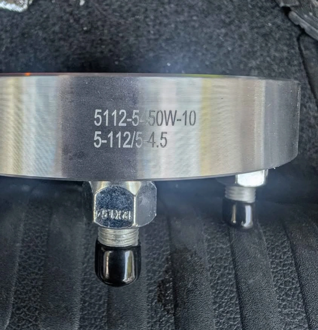 5Selling a set of four wheel spacers, marked with '5112-5 50W-10' and '5-112/4.5'. They appear to be in good condition and ready to use. Perfect for enhancing your vehicle's stance and handling!