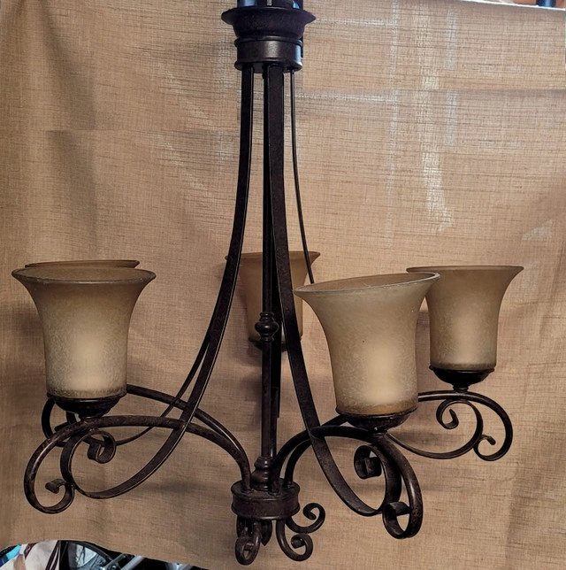 Rubbed antique brass finish, 5 standard bulb hanging lighting fixture. 100% functional.