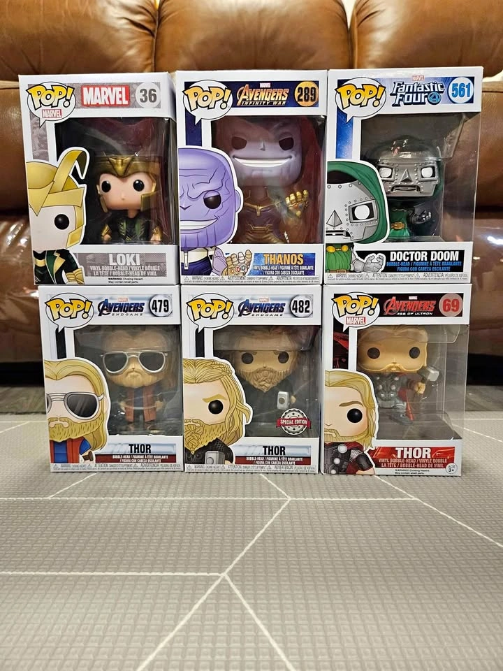 5$30 for all. Never opened! 36 Loki. 289 Thanos. 561 Doctor Doom. 479 Thor. 482 Thor. 69 Thor.