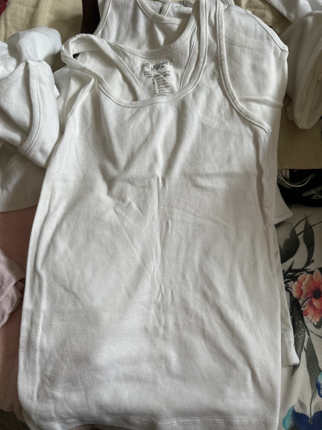 Selling a white Jockey tank top in size medium. It's made of 100% cotton and is in great condition. Perfect for layering or wearing on its own during warmer weather!