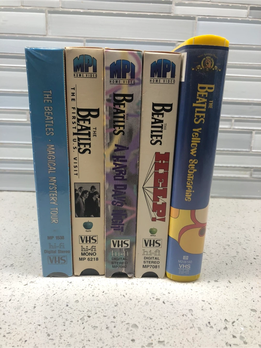 Selling a collection of The Beatles VHS tapes! Includes titles like Yellow Submarine, Help!, and The First U.S. Visit. Perfect for any Beatles fan or collector of vintage media