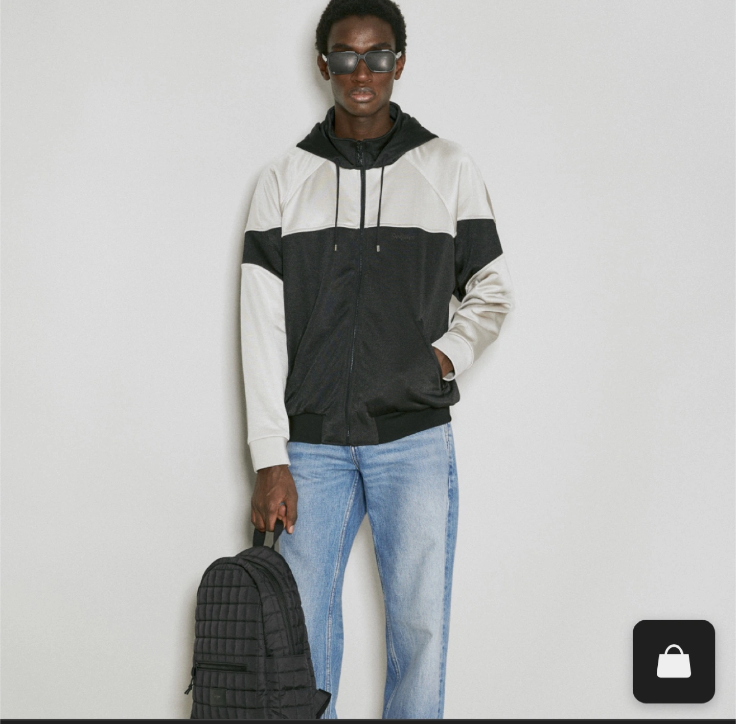 Men's hooded jacket. Colour blocked in black and off-white hooded full zip windbreaker.