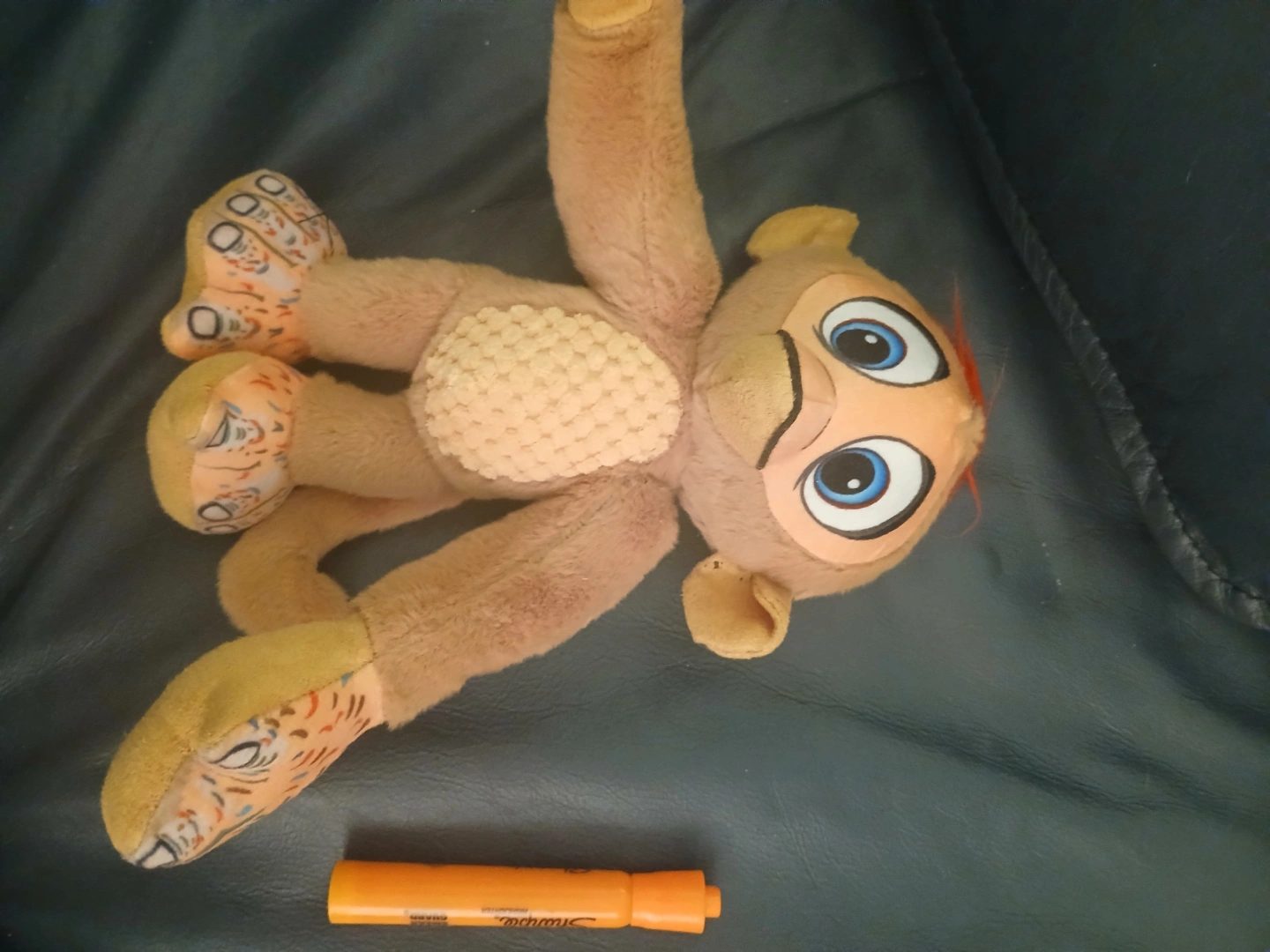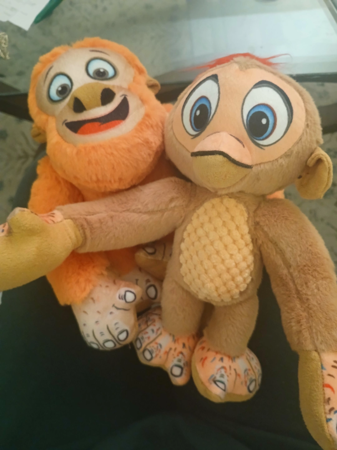 Two adorable plush monkey squeaky toys. New, never used. Selling as my Bernese Mountain Dog passed away recently. One orange orangutan and one brown monkey. Both feature unique designs on their feet. Great for Large Dogs. Pick up only.