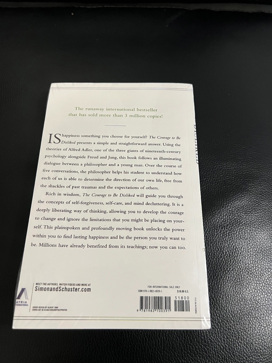 International bestseller. Follows an imaginary dialogue between a philosopher and a young man. Over the course of five conversations, the philosopher helps him understand how each of us is able to determine the direction of our own life, free from the shackles of past traumas and the expectations of others. Deeply liberating way of thinking, allowing you to develop the courage to change and ignore limitations. Find lasting happiness and be the person you truly want to be.