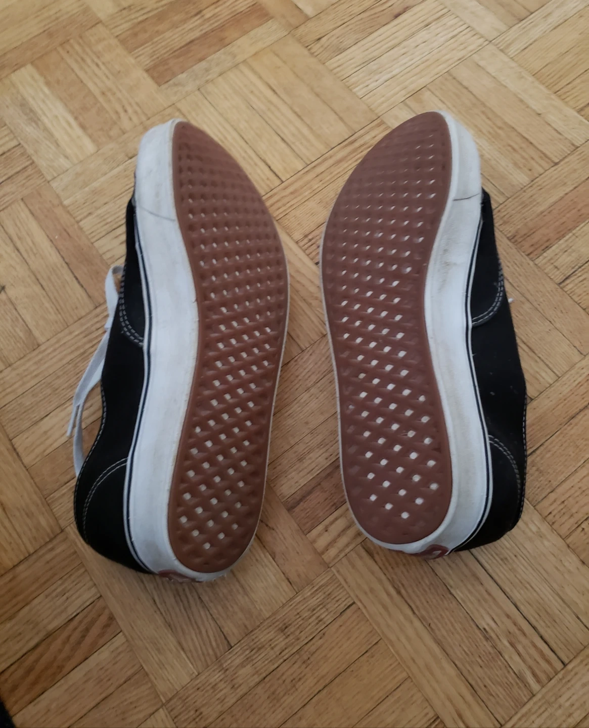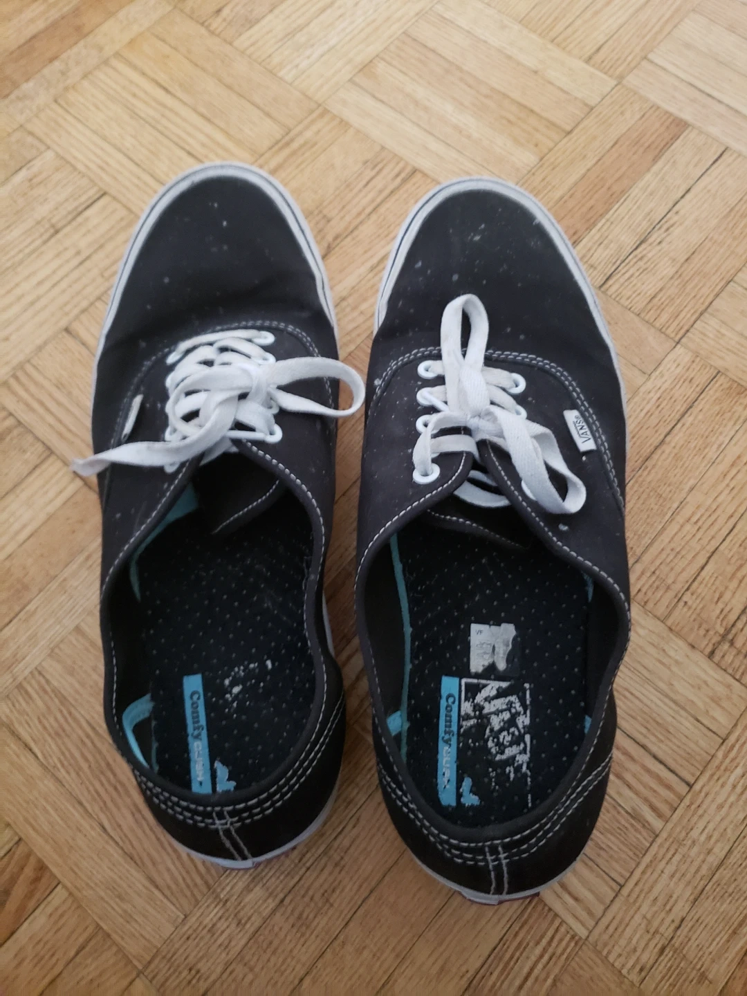 Vans Authentic low-top sneakers. Black canvas upper, white sole. Size US Men's 11.5 Comfortable and stylish.