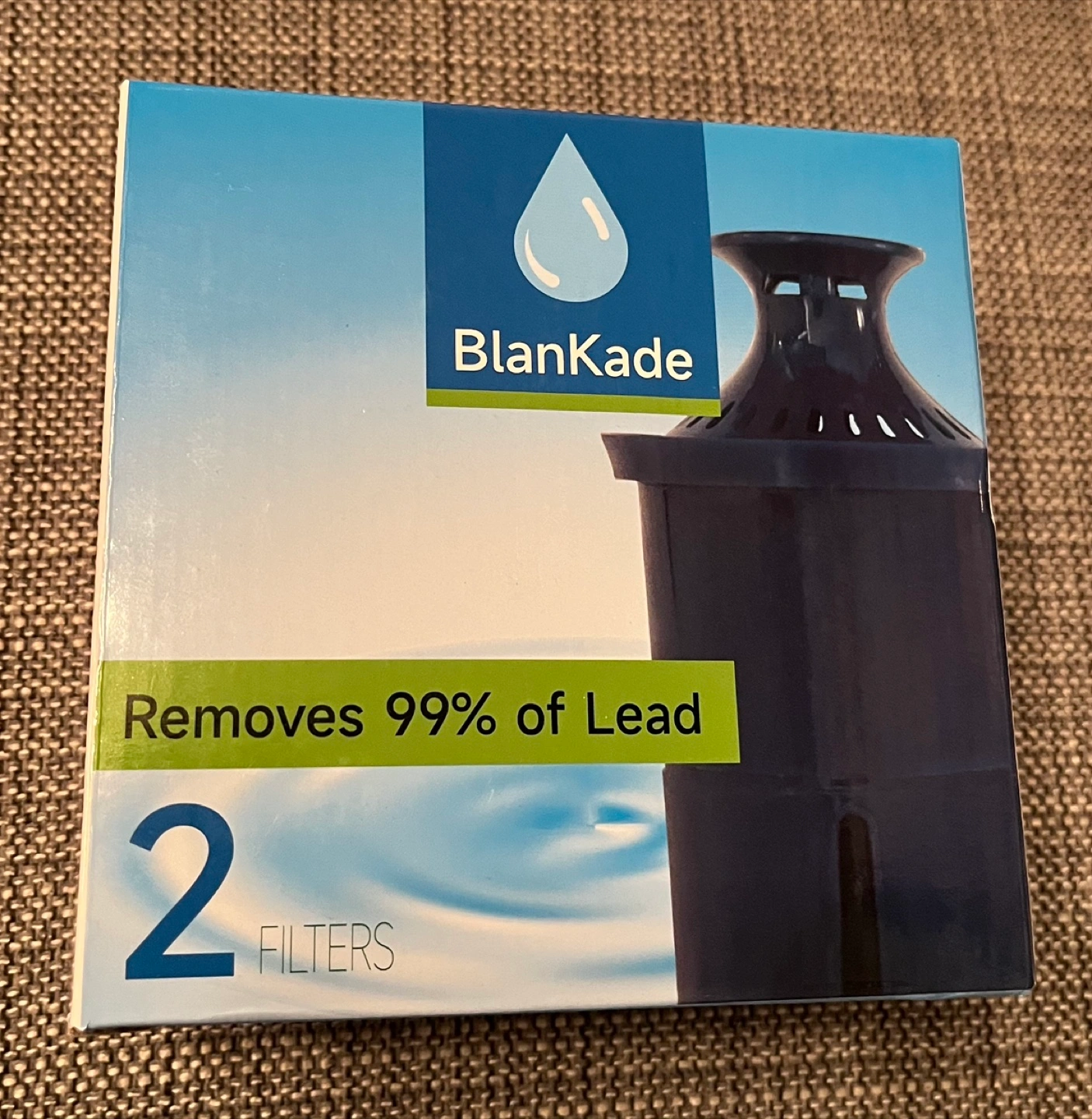 Two new Blankade replacement water filters. Removes 99% of lead. Long-life pleated filter technology. Reduces chlorine taste and odour. Easy insertion and removal. Replace every 120 gallons.