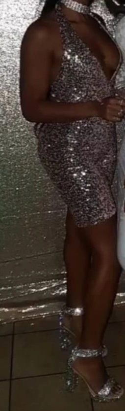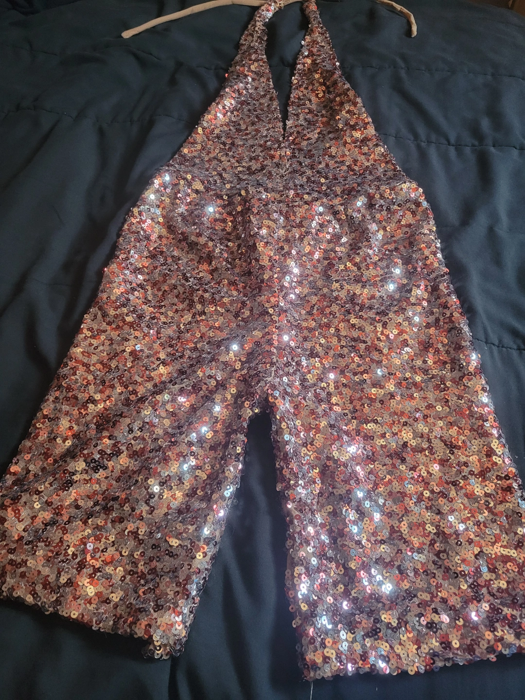 click on photo to view full Sequined jumpsuit. Halter neck design.