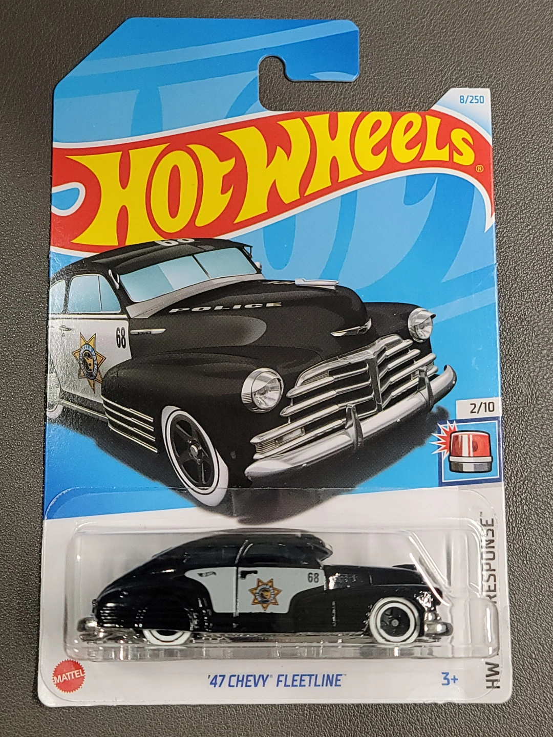 41Collectible Hot Wheels die-cast car. '47 Chevy Fleetline model. Police car design. Part of the HW Response series. Number 2 of 10.