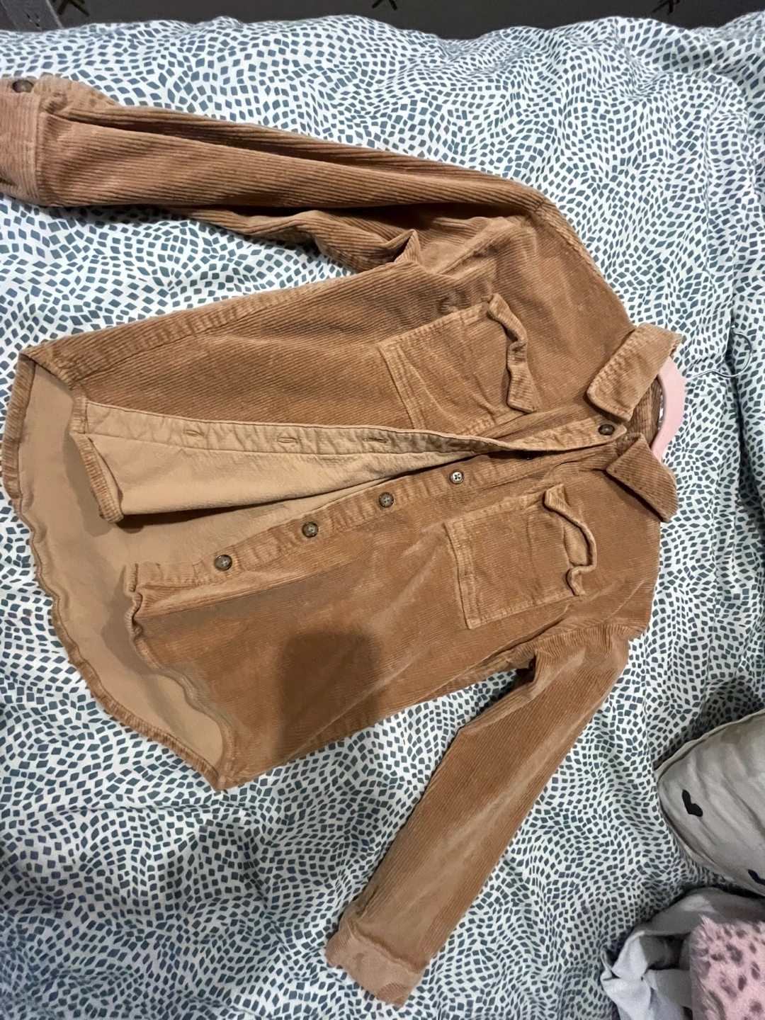 Lightweight corduroy shirt. Button-down closure. Long sleeves. Chest pockets. Relaxed fit. Excellent condition. Made with 97% organically grown cotton.
