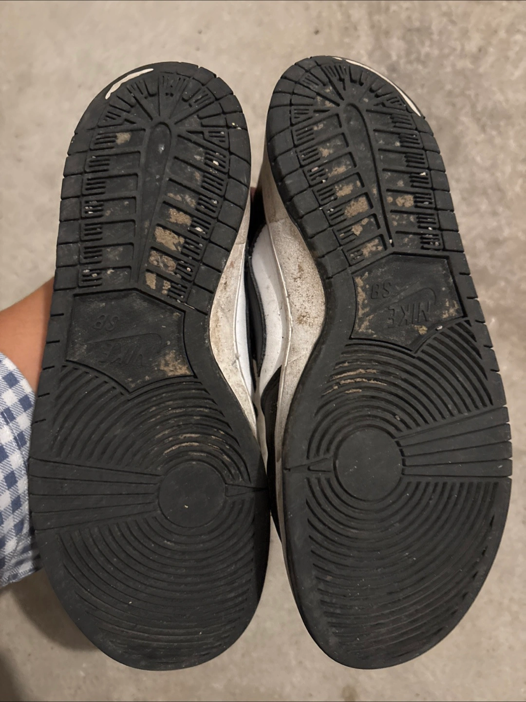 Pre-owned Nike SB Dunk Low black sneakers. Black and white colourway. Show some wear. Check images for details.
