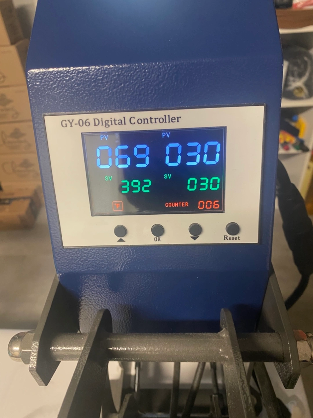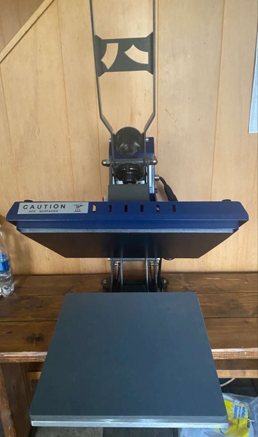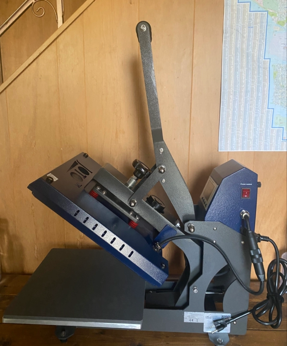 Heat press for sale. Features a digital controller and swing-away design. Good condition. Includes power cord.