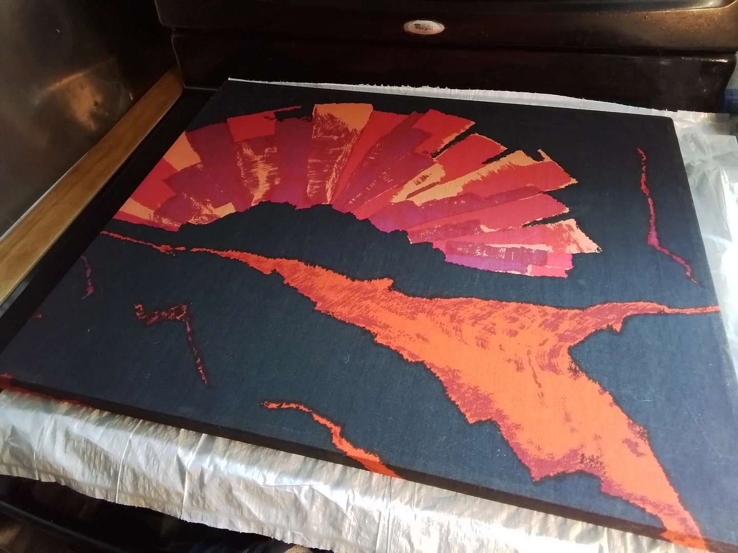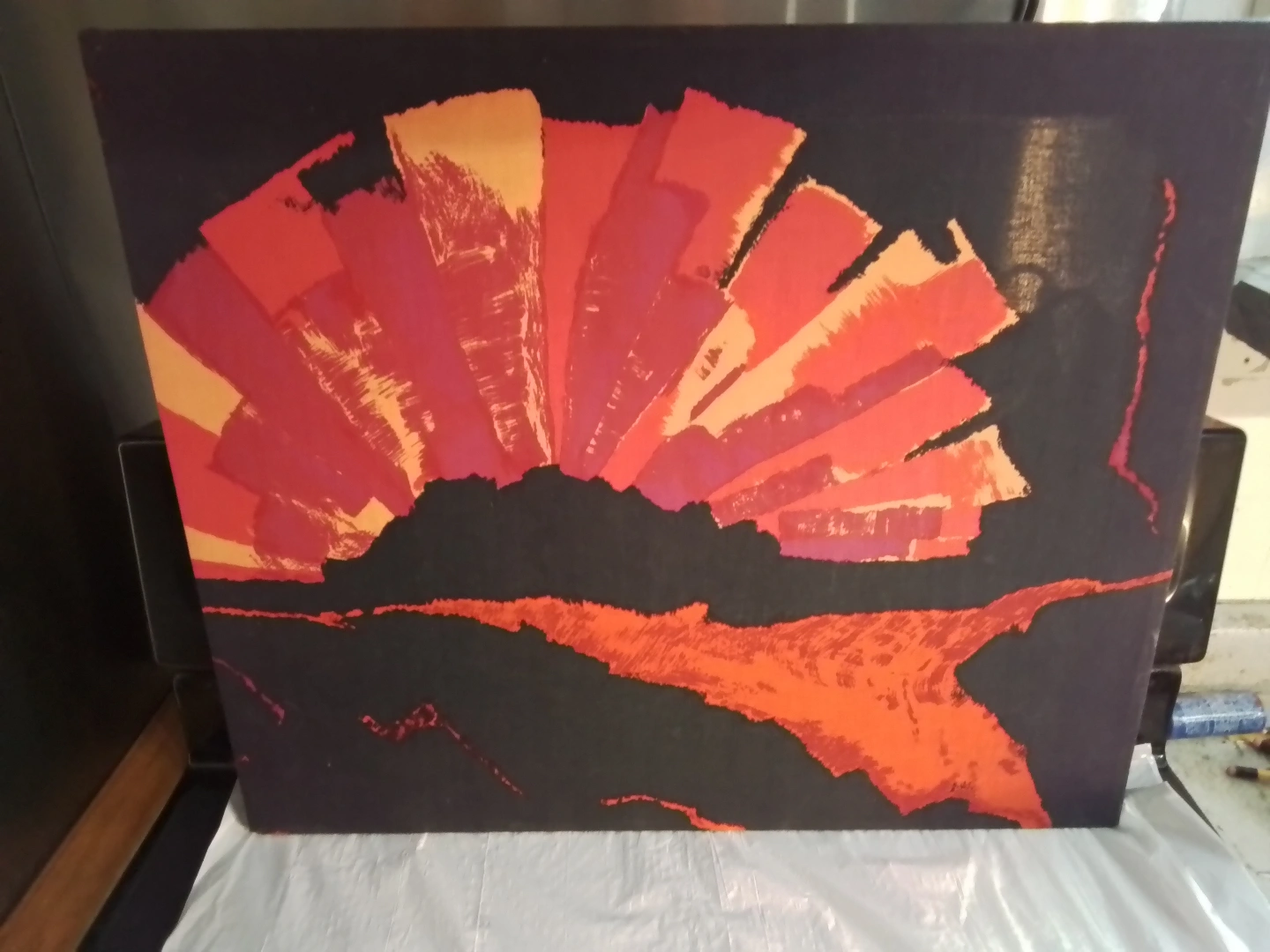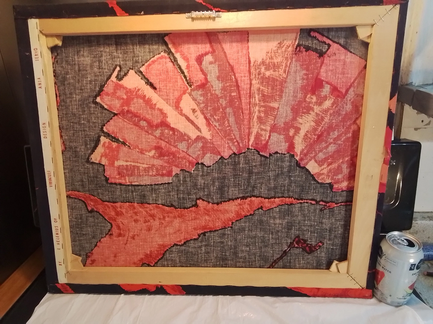 114MCM Finnish piece titled Virvatuli by Anja Terho Bold colours and abstract design. Excellent statement piece for a modern home. I'm offering a captivating Anja Terho painting that features bold strokes of red, orange, and black, creating a striking abstract landscape. As a used piece, it carries its own unique history and charm. Displaying this canvas, with dimensions of approximately 52x61 cm , would definitely be a conversation starter in any room. Please note this is a used item, so it has some character that only comes with age and previous admiration. Don't miss out! Also, if the ad's still up, then yes, it's still up for grabs! Pickup at Young Street and Steels Ave