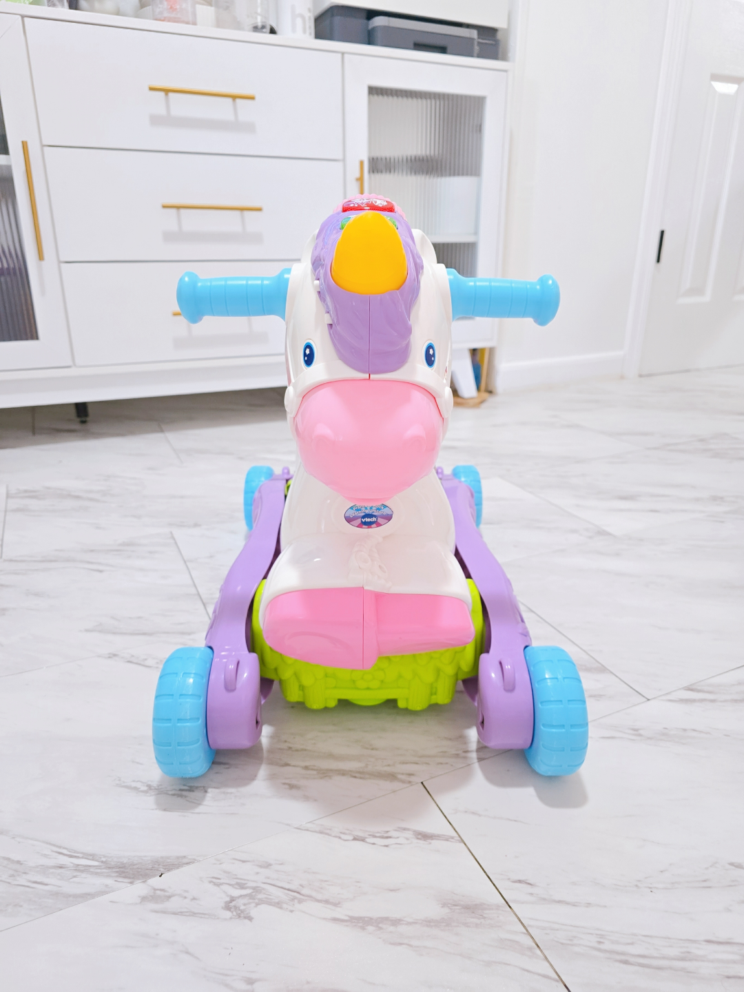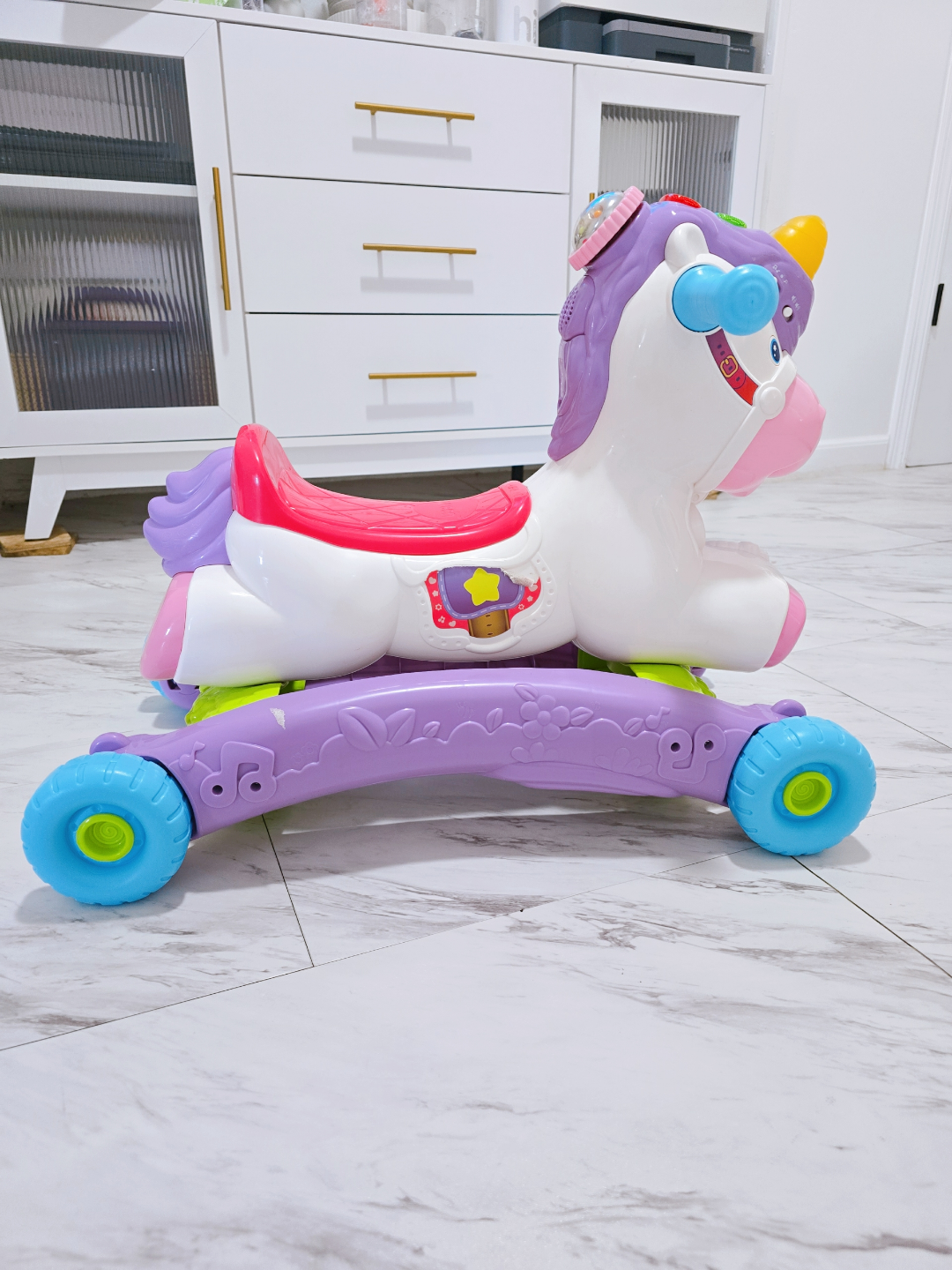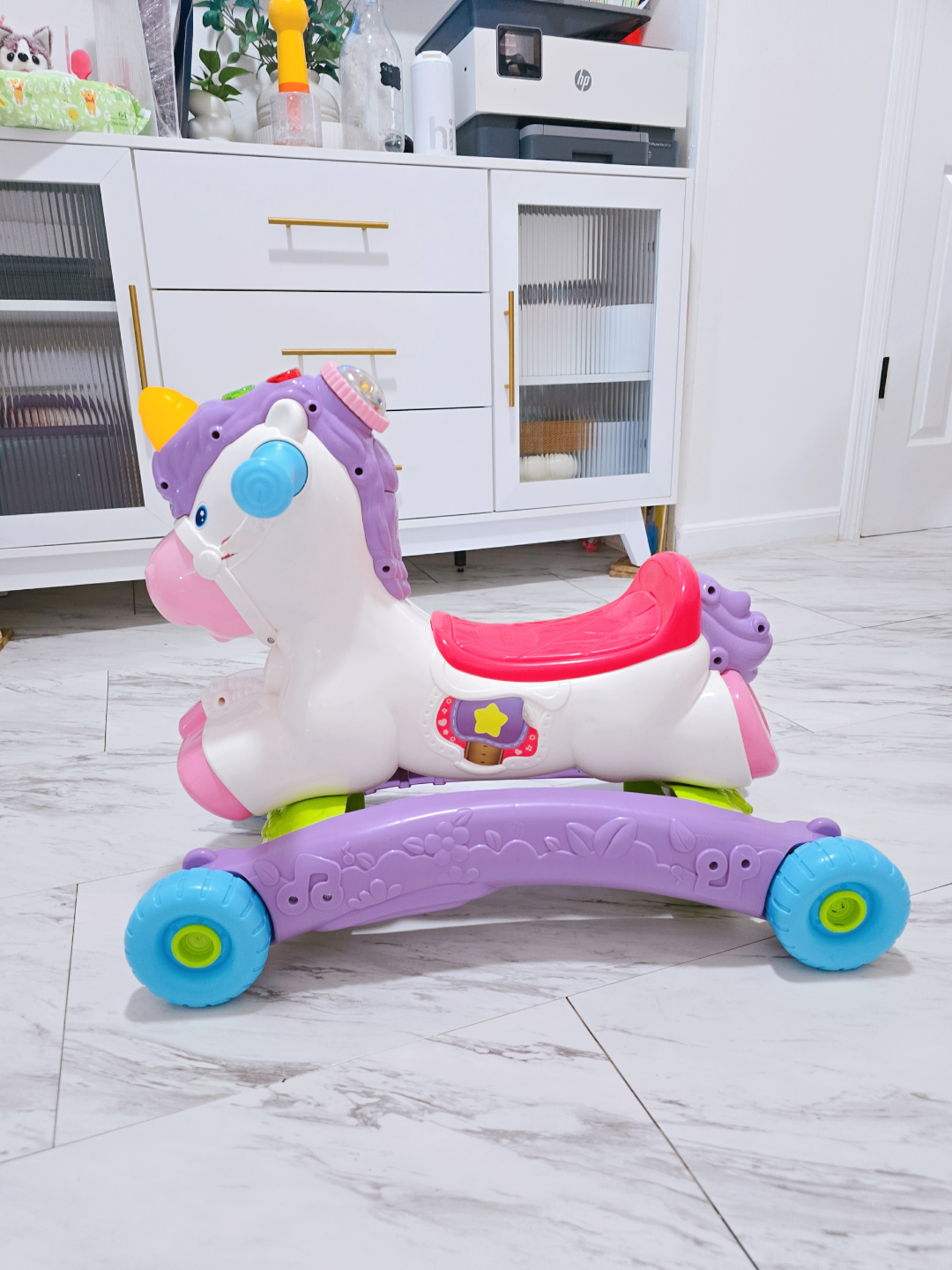 Adorable unicorn ride-on toy. Features lights and sounds. Great for toddlers. Gently used.