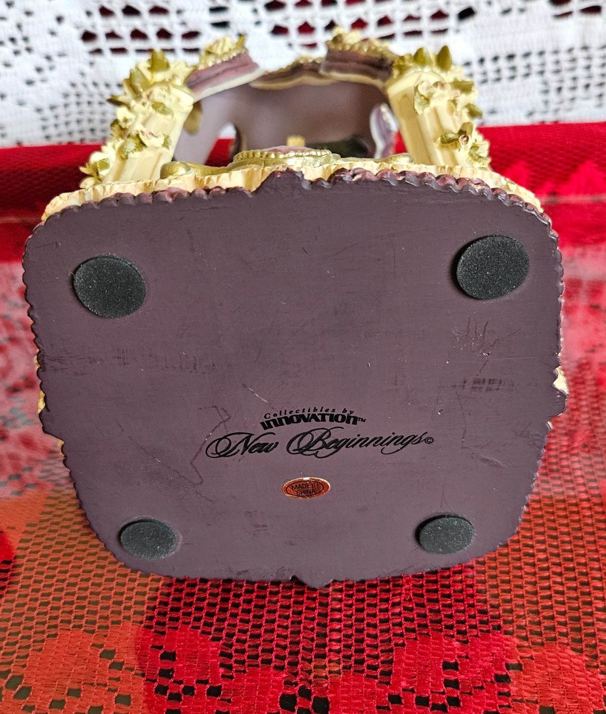 Material: Likely made of ceramic or resin with floral and pearl accents.