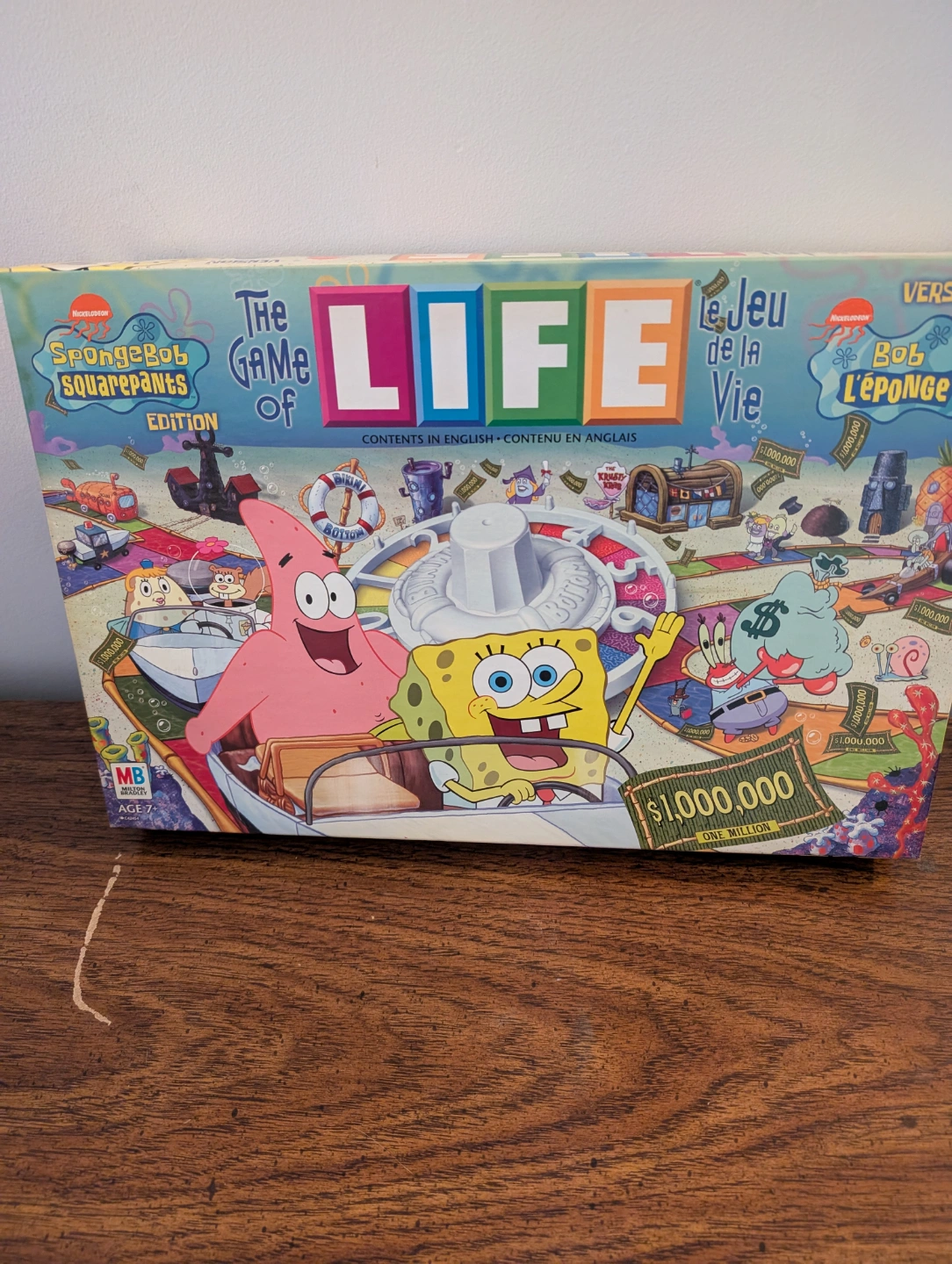 Vintage Spongebob Squarepants edition of the Game of Life board game. Features Spongebob, Patrick, and other characters. Includes game board, playing pieces, and instructions. For ages 7+
