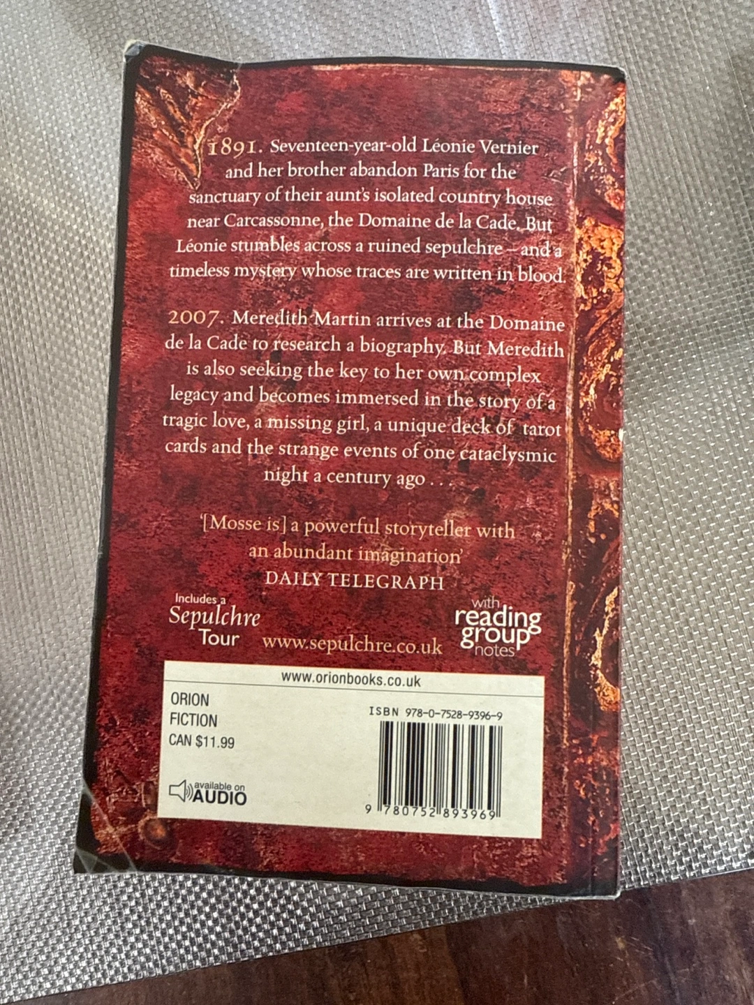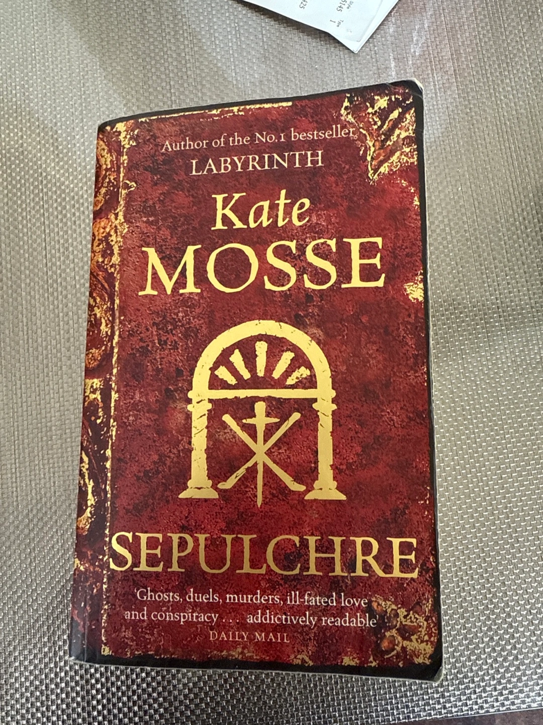 153Paperback copy of Sepulchre by Kate Mosse. Ghosts, duels, murders, ill-fated love and conspiracy. Addictively readable. Orion publishing. Includes a reading group notes section.
