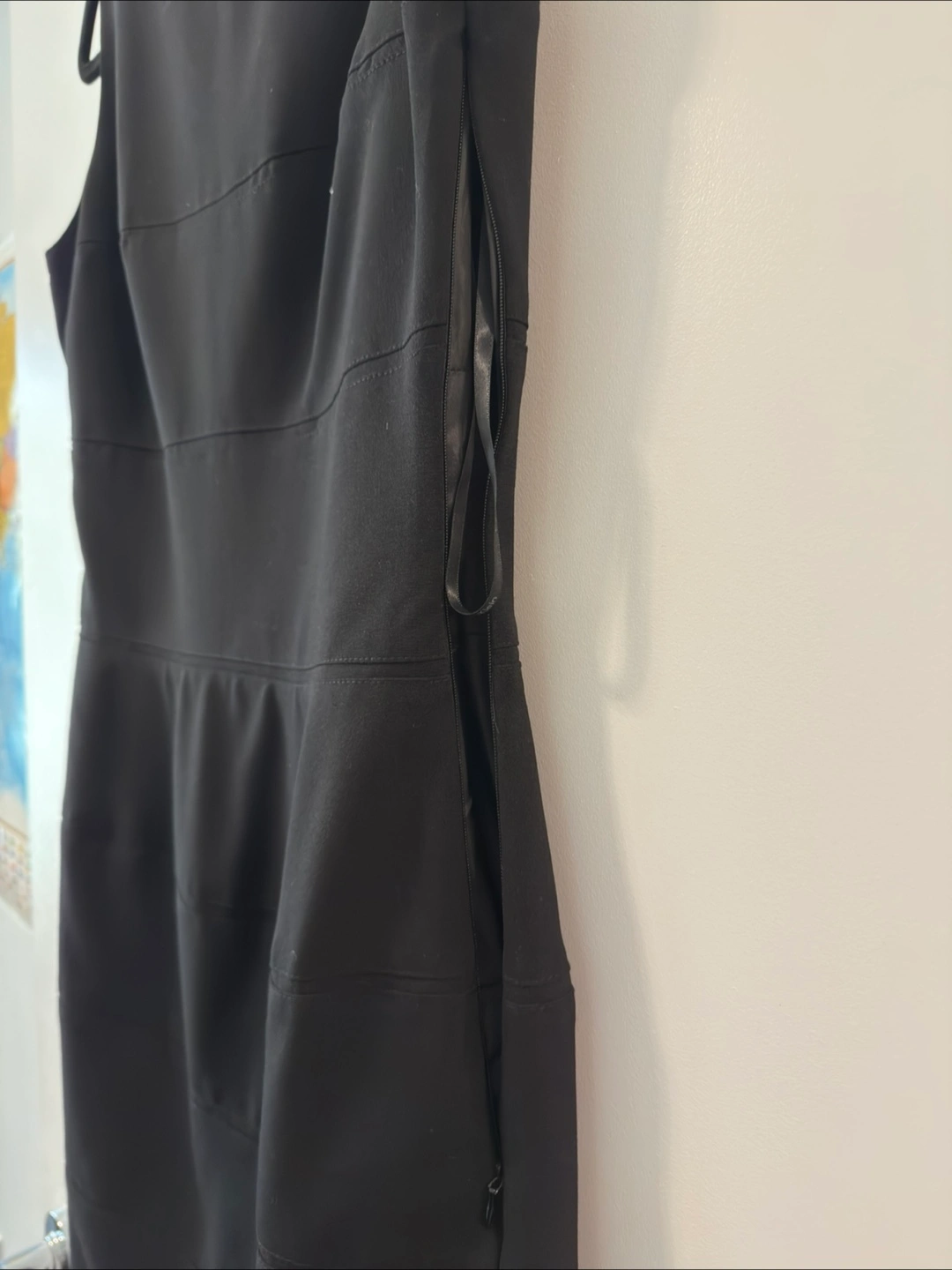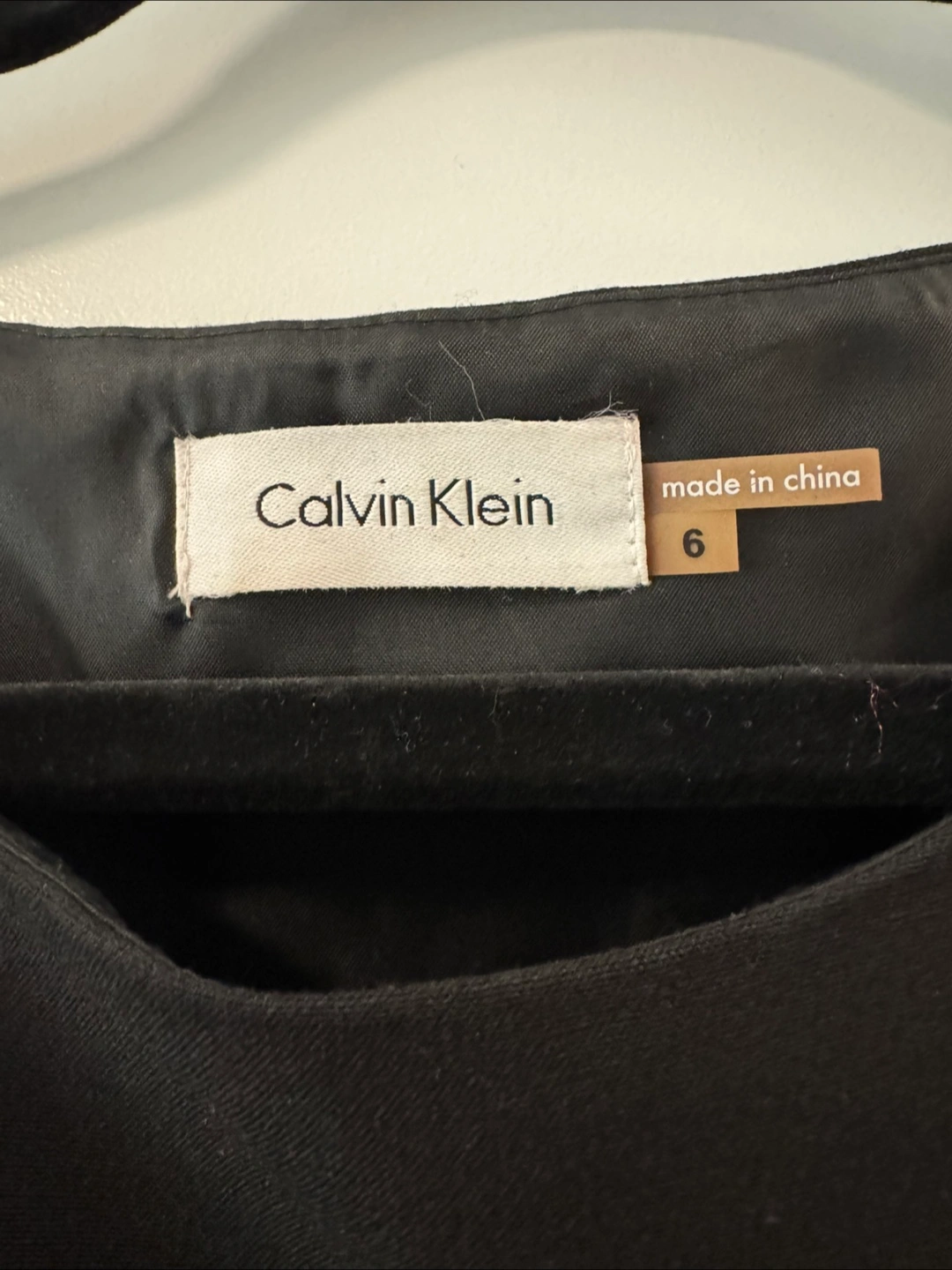 This is a Calvin Klein sheath dress in a little black dress style. It is a size 6 and features a zipper closure, perfect for any occasion. The dress is in almost new, ready to elevate your wardrobe.