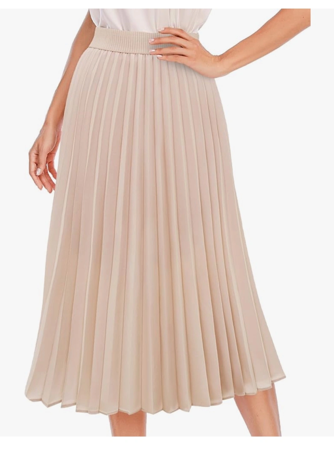 Beige Pleated Midi Skirt