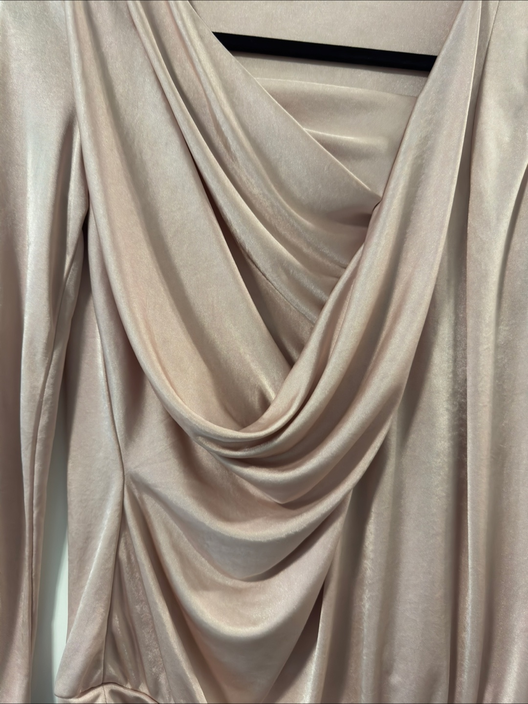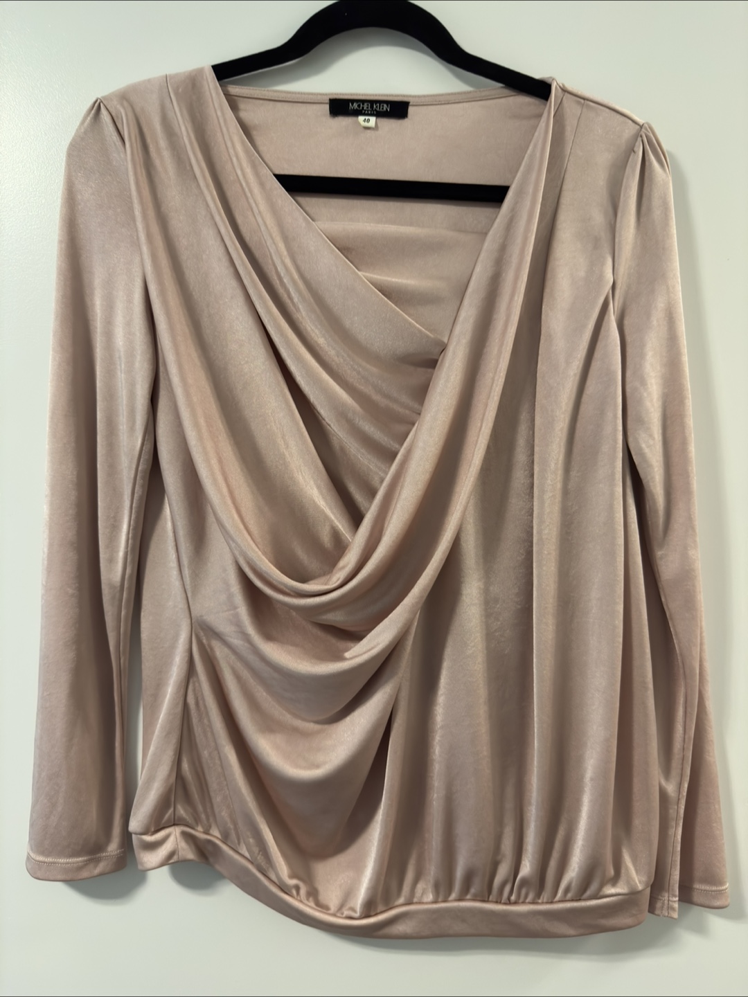 This is a Michel Klein Paris blush coloured draped long sleeve top, perfect for an elegant night out! This garment is in great condition.