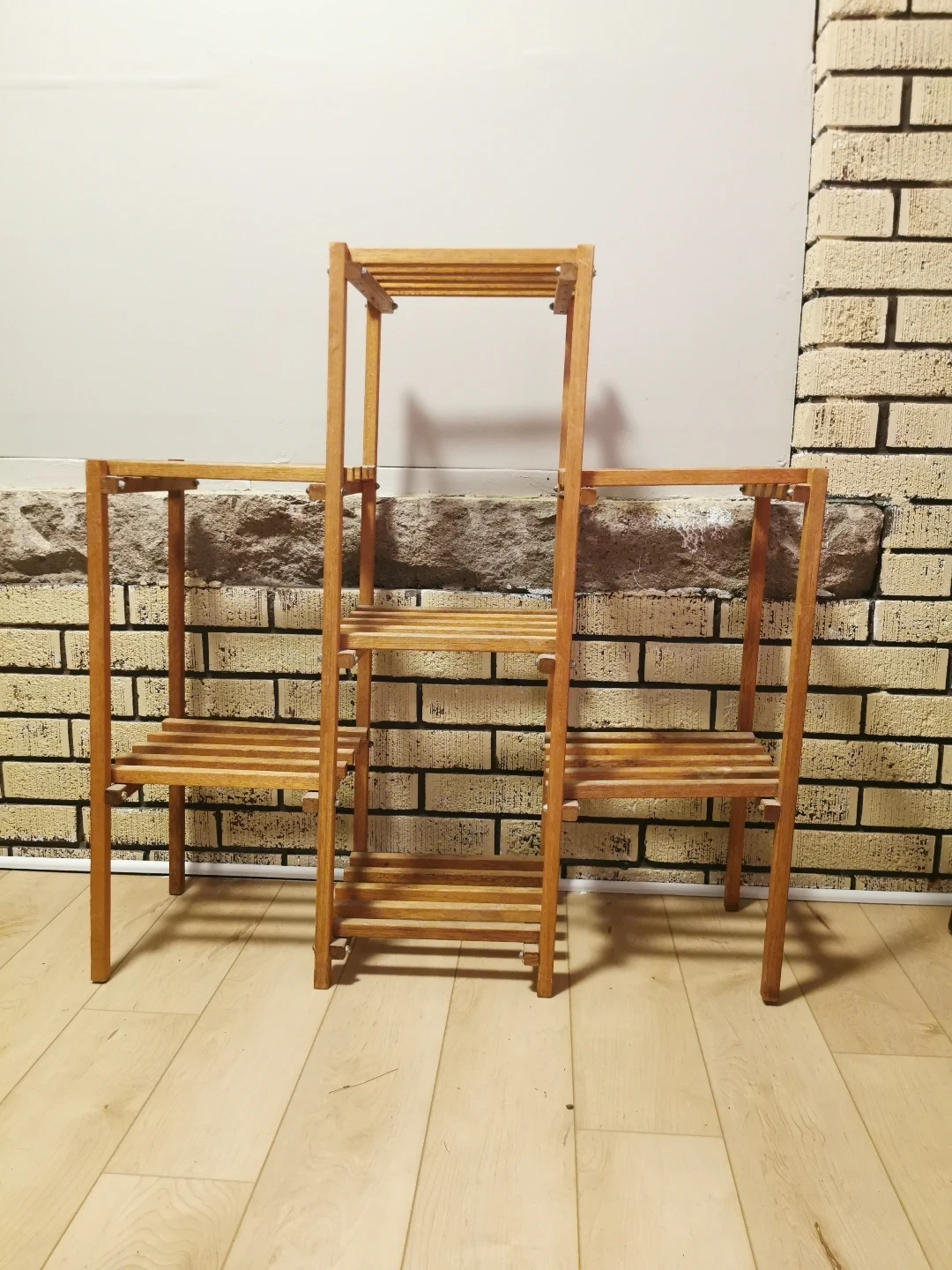 Multi-tiered wooden plant stand. Great for indoor plants. Simple design. 30+ years old, wobbly but functional