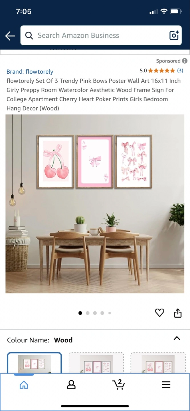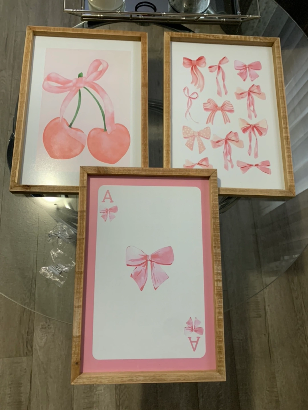 Set of 3 Trendy Pink Bows Wall Art 16x11