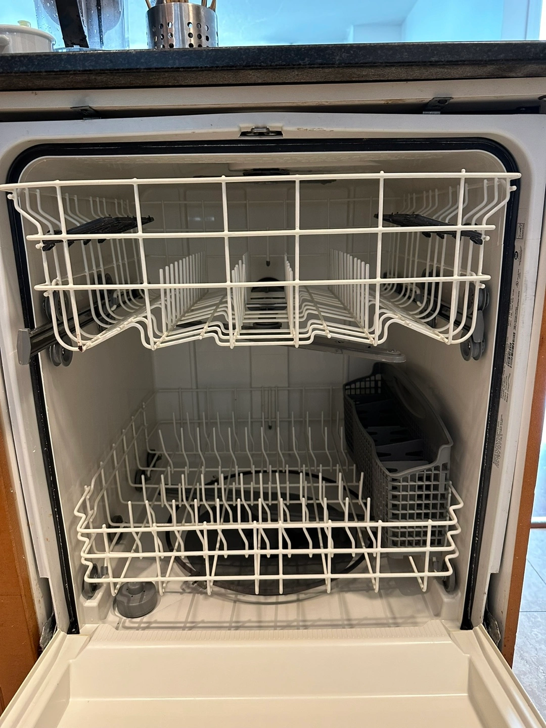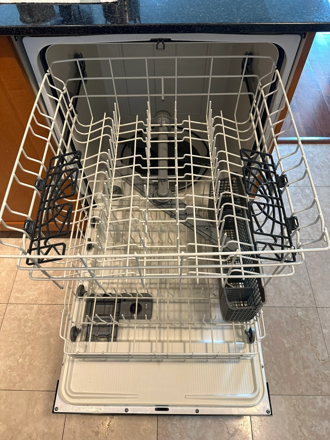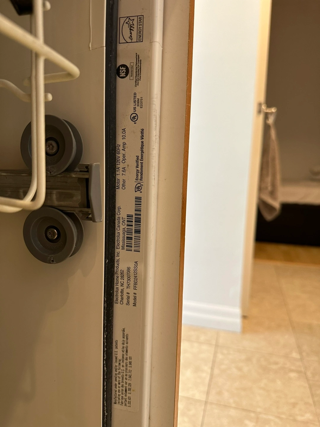 Used Frigidaire built-in dishwasher. Stainless steel finish. Includes upper and lower racks. Model FFH2600ES5A.