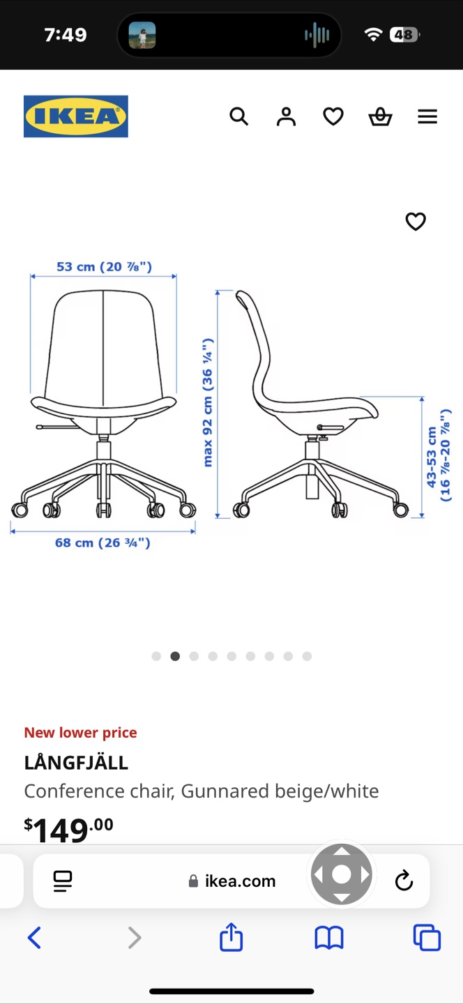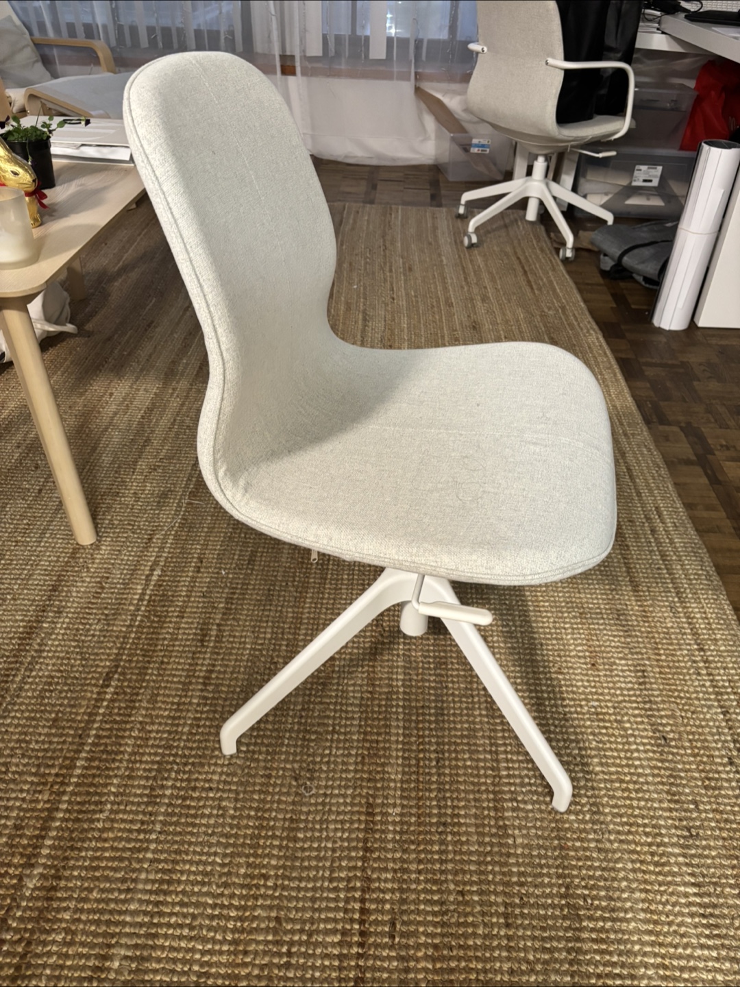 1 / 41 / 4Buy & SellMoving Sale IKEA LÄNGFJÄLL Chair - Beige/WhiteMoving Sale IKEA LÄNGFJÄLL Chair - Beige/White$40IKEA Swivelling office chair. Beige fabric seat and white legs. Good condition.WHERE TO MEETCollege park courtyardView MapSELLERJuliaBay Street Corridor46434 reviews4 chats·1 favorites·63 viewsSEND CHAT TO SELLERHi Julia! I’m interested in your listing.Hi Julia! I’m interested in your listing.Get the Karrot app to chatSign In to chat