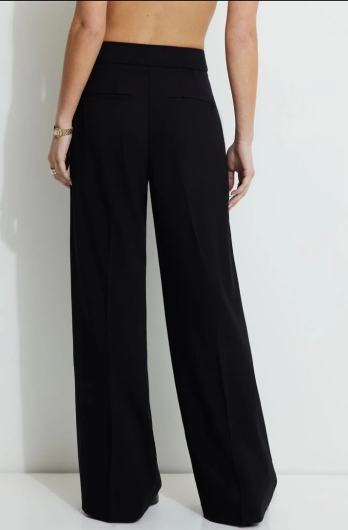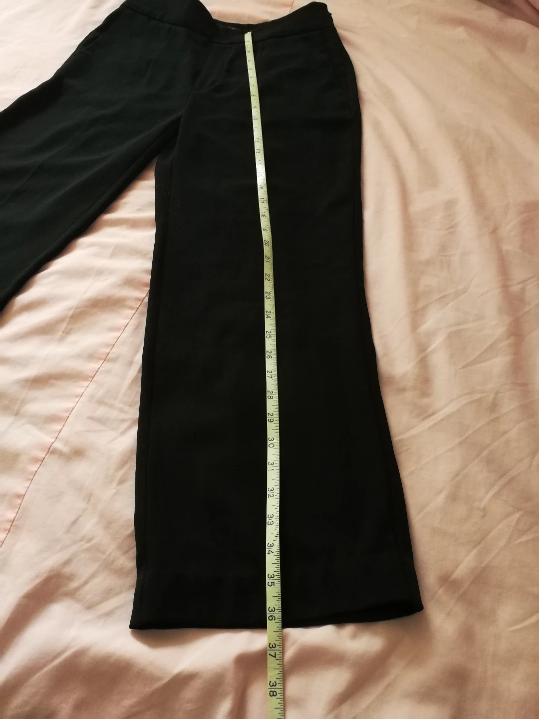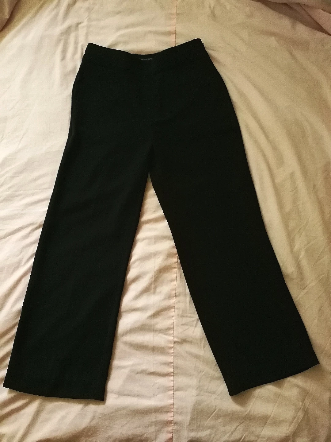 1000+Black wide straight-leg trousers. Flat front, pockets at the back are not real. Light and flowy, no lining, great for spring and summer. Excellent condition. zipper closure on the side. Size 2 ** The length is for petite size, fits XS-S. See measurements in the pictures. pick up in downtown close to St Patrick station, Dundas-University area or Yonge-Bloor