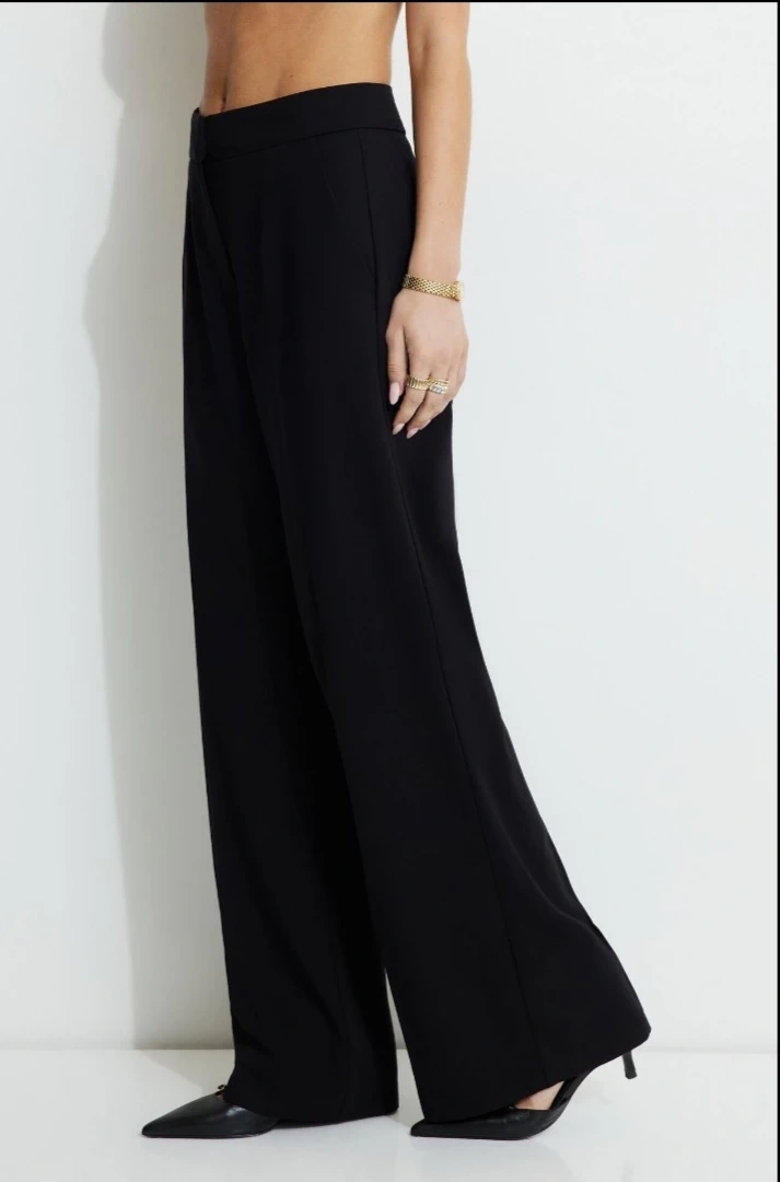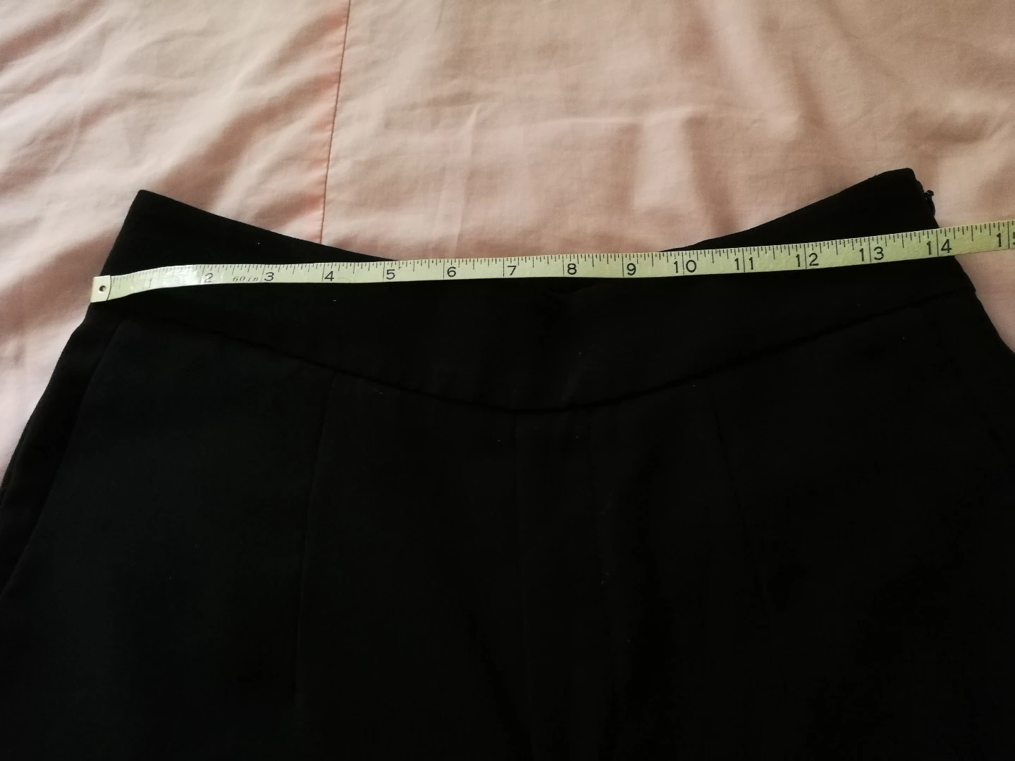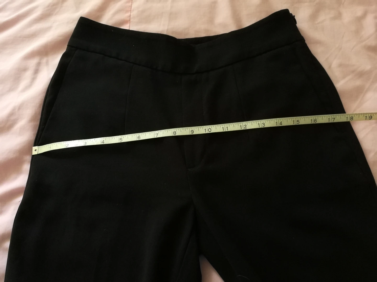 1000+Black wide straight-leg trousers. Flat front, pockets at the back are not real. Light and flowy, no lining, great for spring and summer. Excellent condition. zipper closure on the side. Size 2 ** The length is for petite size, fits XS-S. See measurements in the pictures. pick up in downtown close to St Patrick station, Dundas-University area or Yonge-Bloor