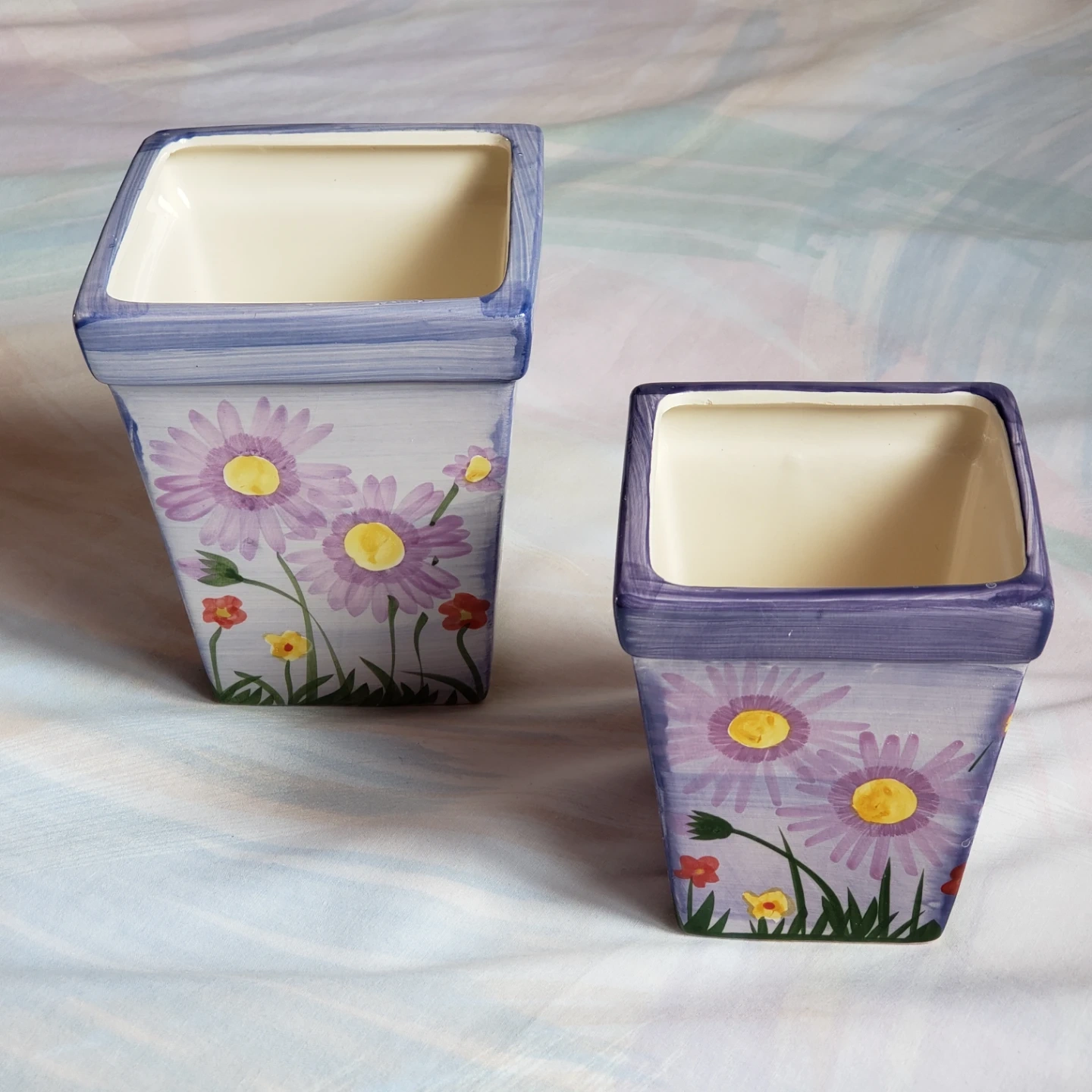 1000+Unused pair of square ceramic pots Perfect for small plants or home decor Large pot: 9.5 x 9.5 x 13cm Small pot: 8 x 8 x 10cm $5 for both pots Hoping the items find a new home! From a smoke-free & pet-free home Cash only & exact change All sales are final; no refunds or reservations Pick-up only Location: Richmond Hill Serious inquries only; messaging only through Karrot Thank you for your interest & please check my 200+ listings for more!