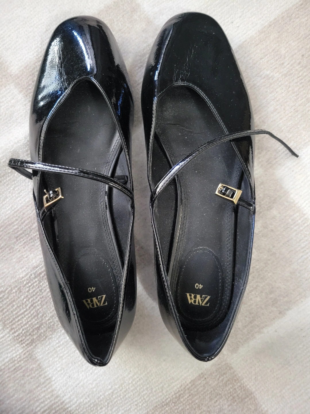 Zara Black Patent Leather Ballerina Flats Size 40