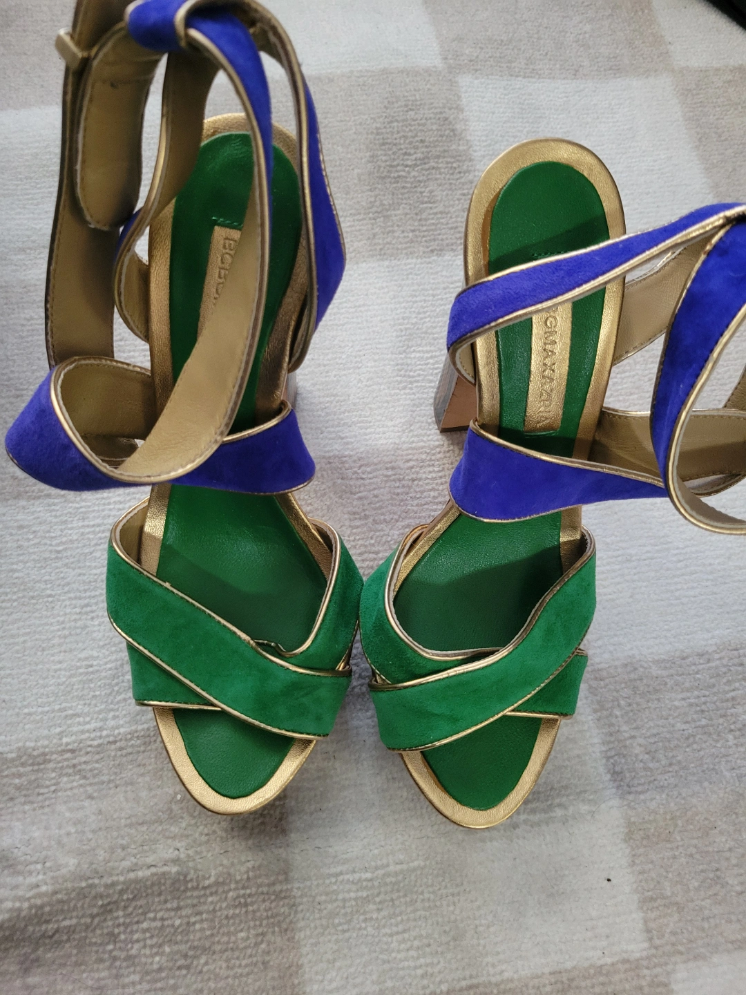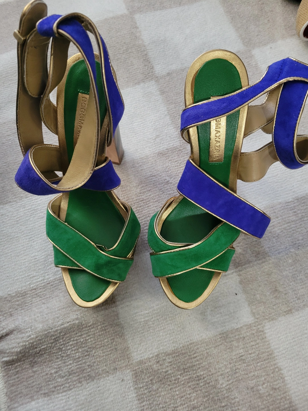 BCBGMAXAZRIA Women's Green and Blue Suede Platform Sandals