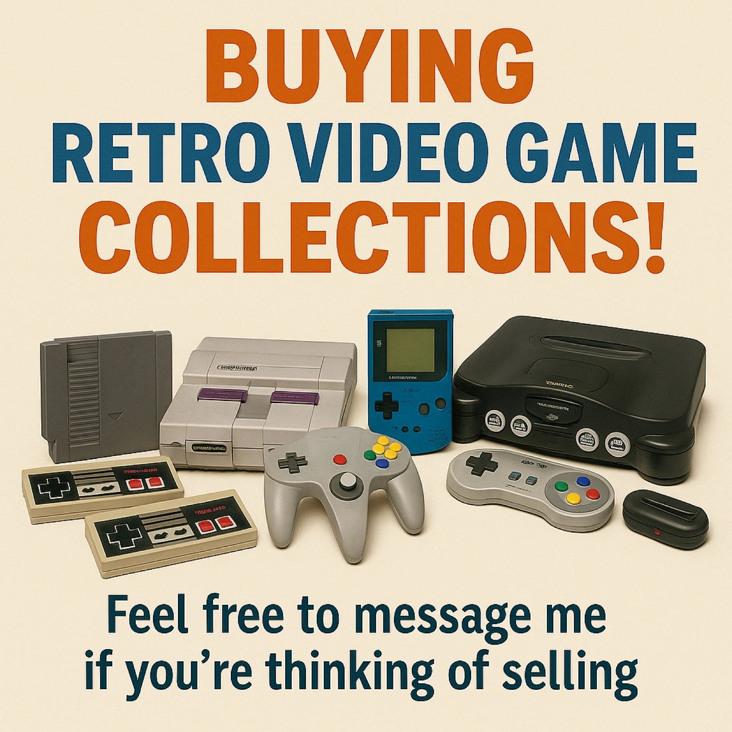 I’m looking to buy retro video game collections — things like NES, SNES, N64, GameCube, Sega Genesis, Saturn, Dreamcast, PlayStation, and older handhelds like Game Boy, GBA, and DS. Whether you have a few games or a full collection, I’m interested!