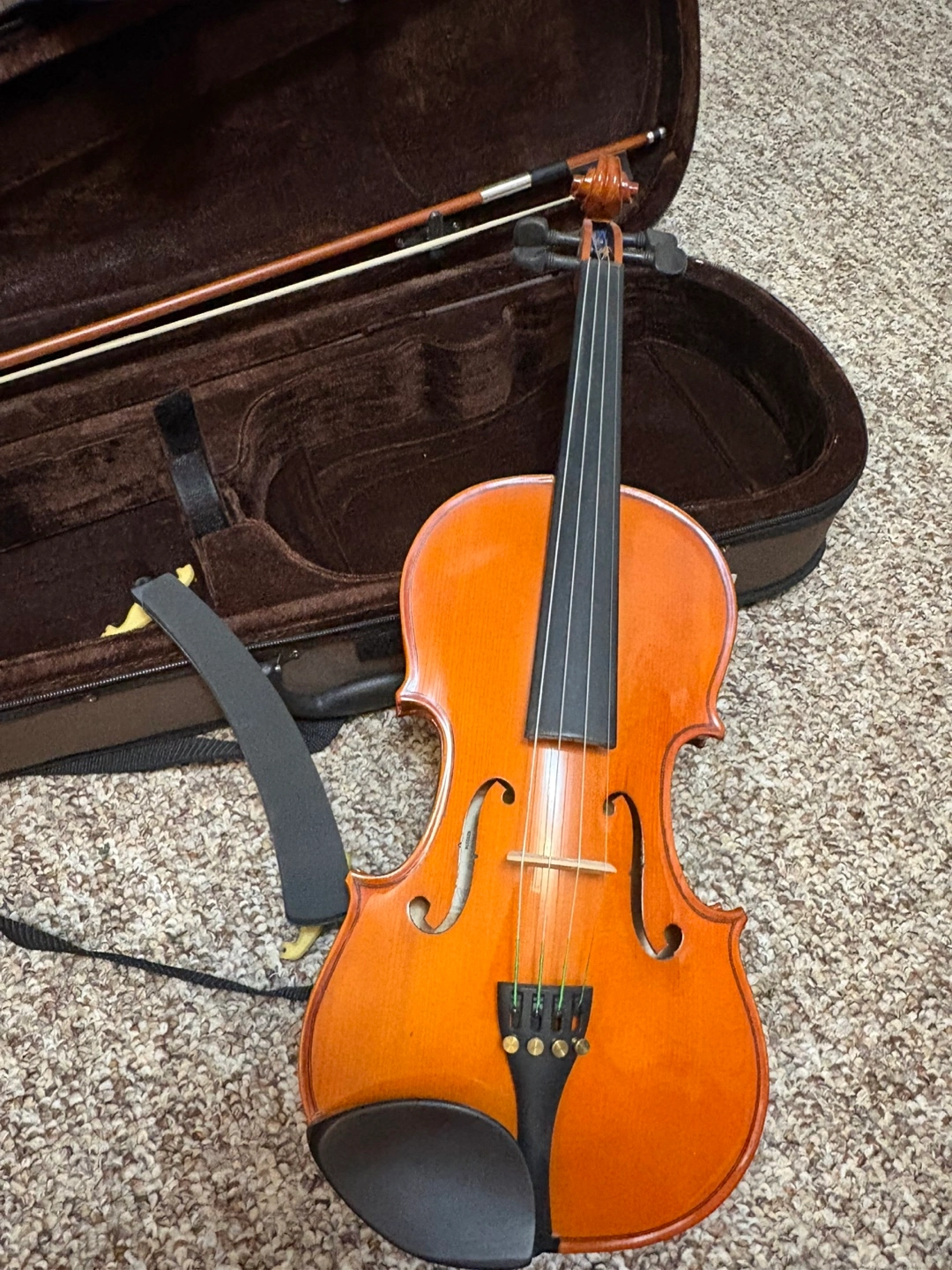 Student violin, includes bow and soft case. Kun shoulder rest also included. Great for beginners.