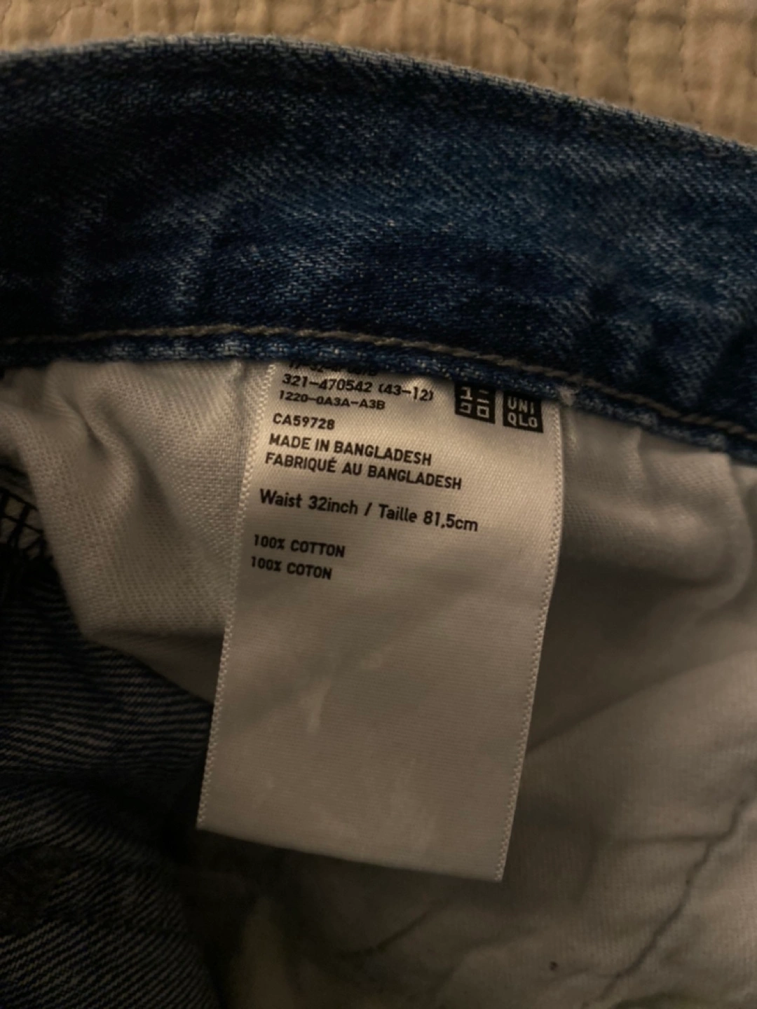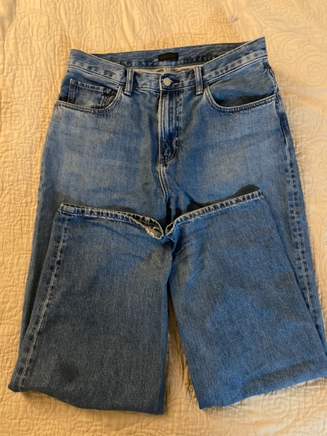 Men's Uniqlo jeans. Light wash denim. Straight leg fit. Size 32. 100% cotton.