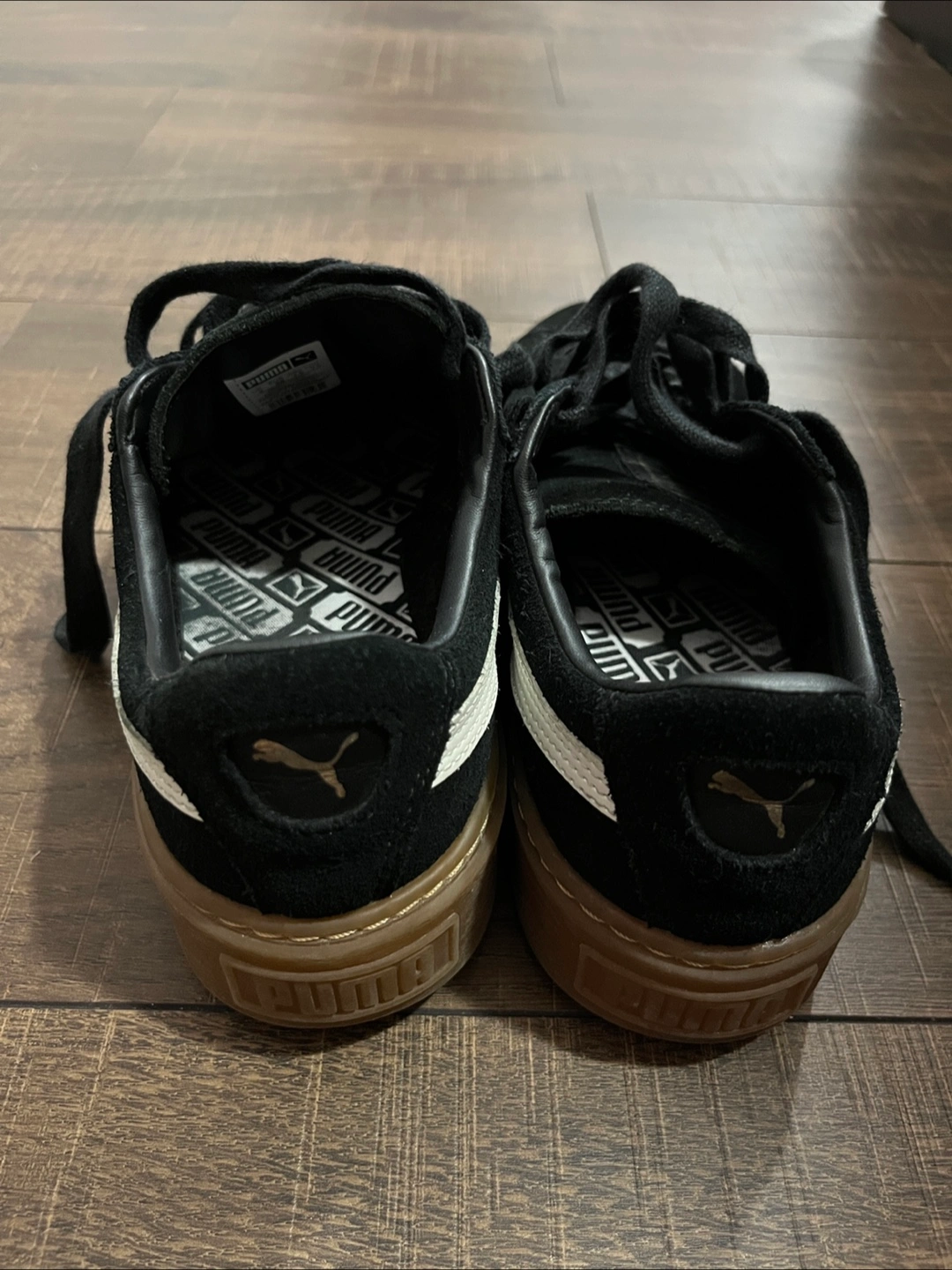 Puma Suede Platform Sneakers - Black & Gum - Women's Size 7.5