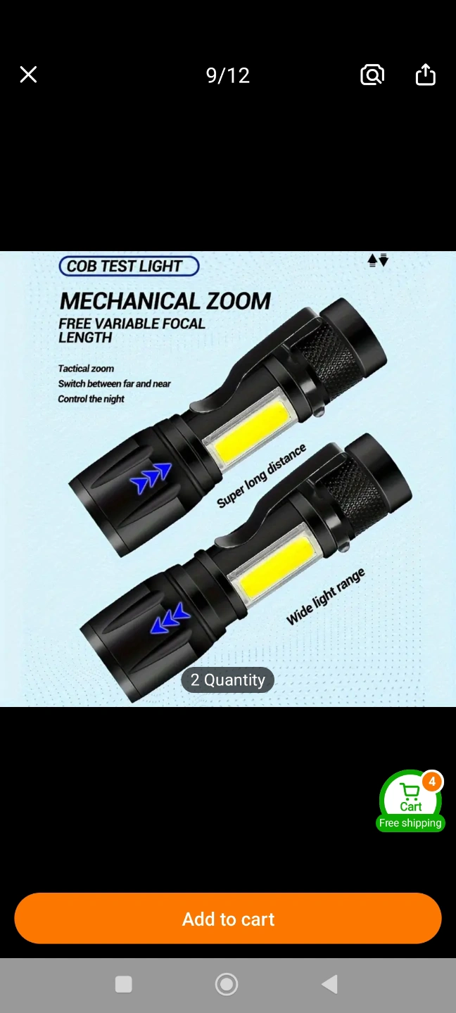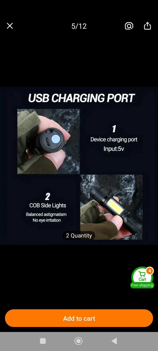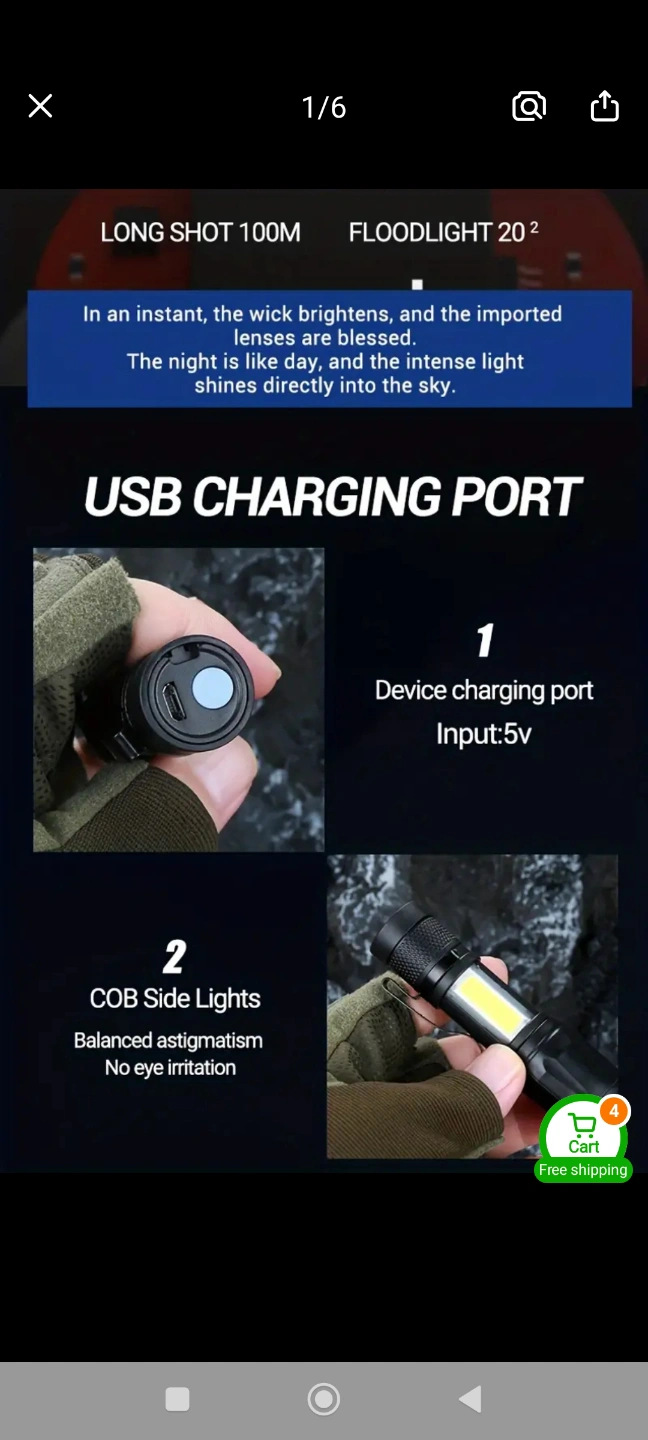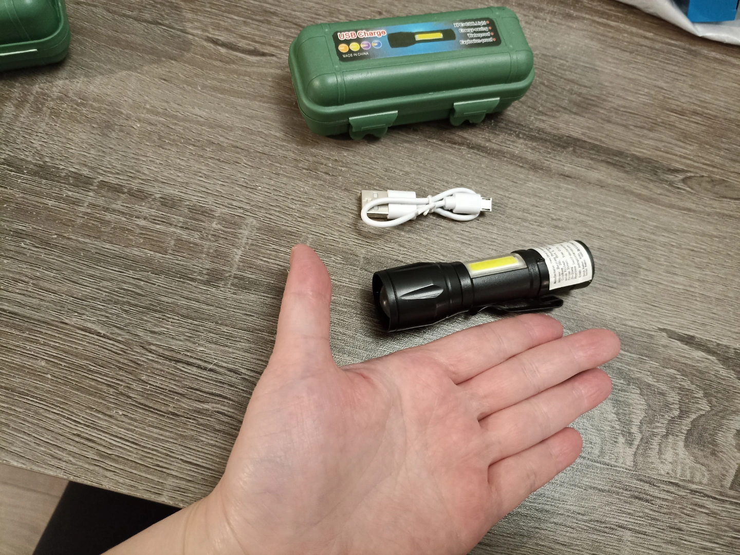 Portable mini LED flashlight with zoom. Multiple lighting modes. Pocket light with pen holder. Ideal for hiking and outdoor emergencies. Rechargeable lithium battery. USB charging. Waterproof. Includes USB cable. Anti-slip design. Bright and dazzling effect. Adjustable focus range. Easy to carry clip.