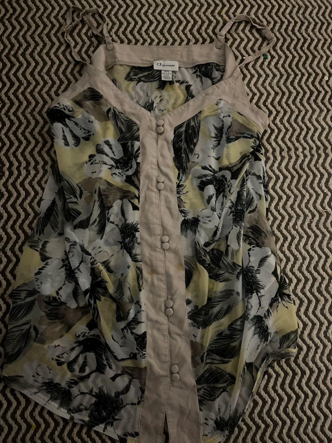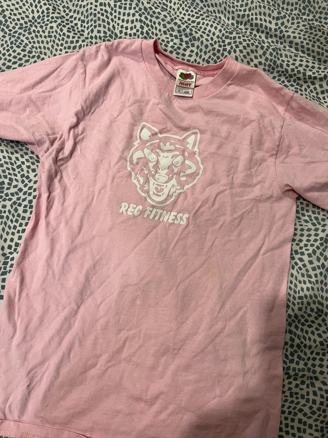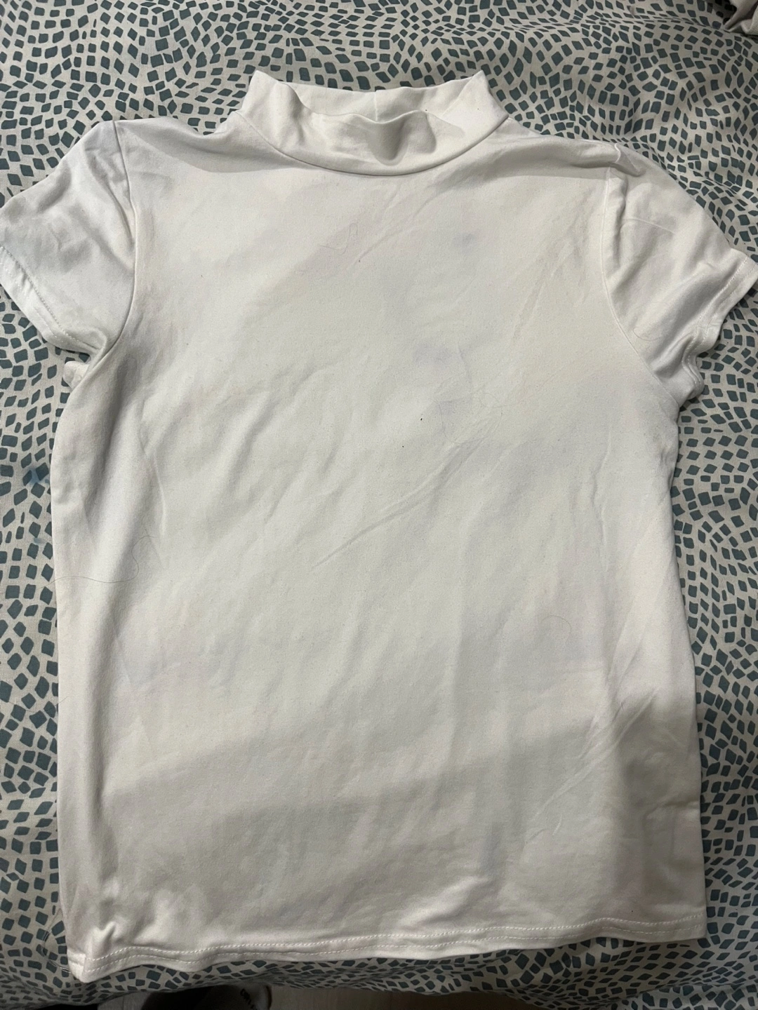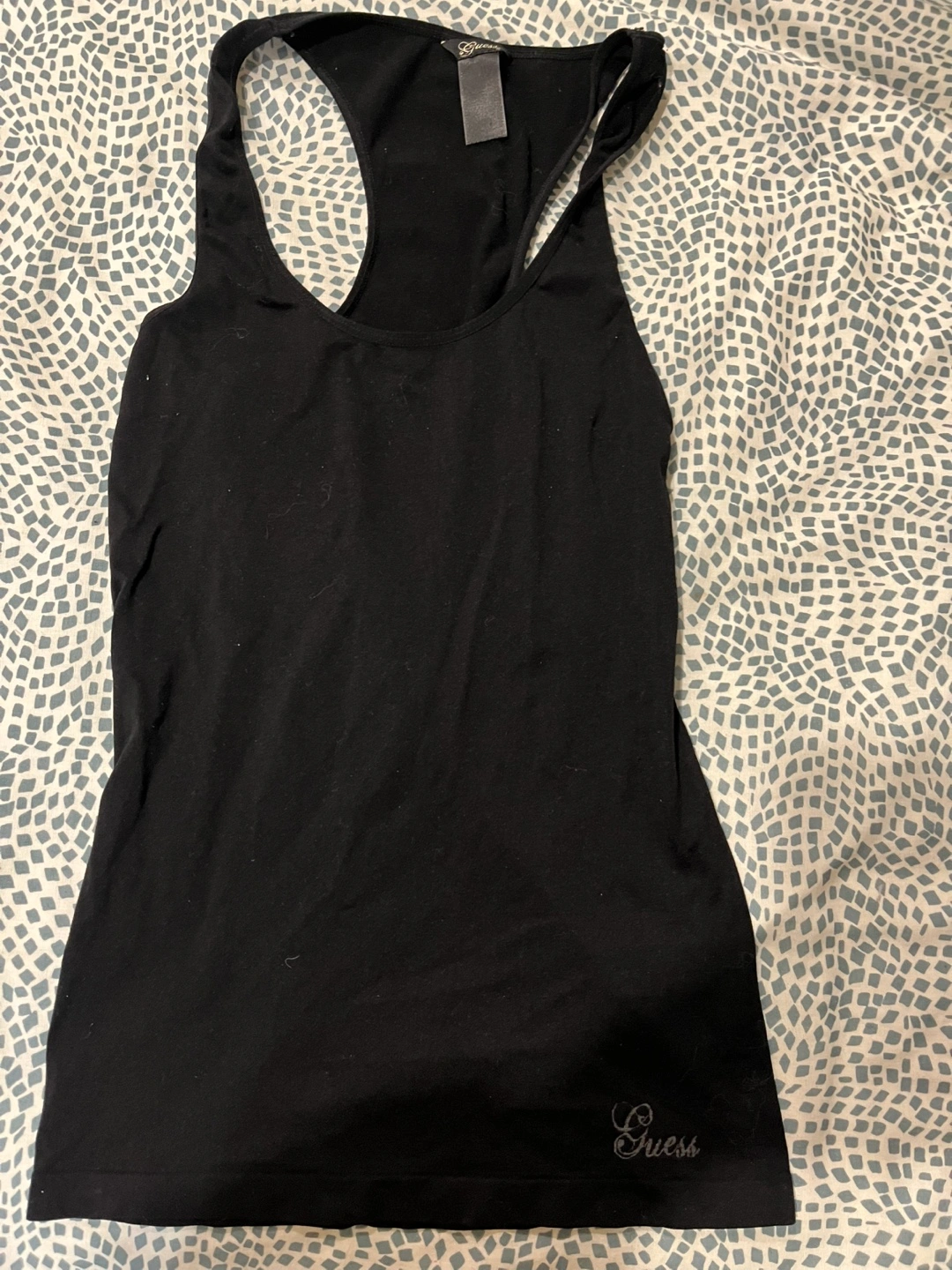 Five tops in various colours and styles. Oilers tshirt small- $7, orange top small- $4, beach tank top- $7, black banana republic tshirt- $7, knotted tshirt- $5, white tank top small- $4, dynamite black crop top- $10, white turtle neck- $5, black tank top- $4, rec fitness shirt- $2